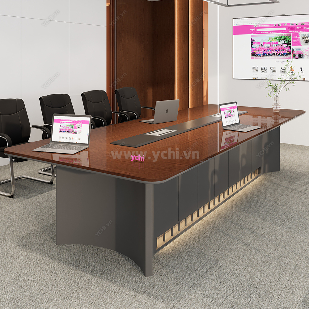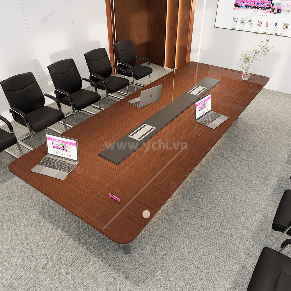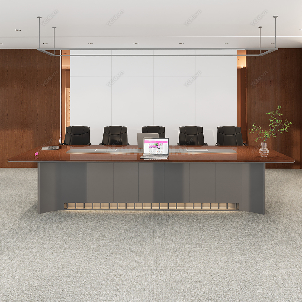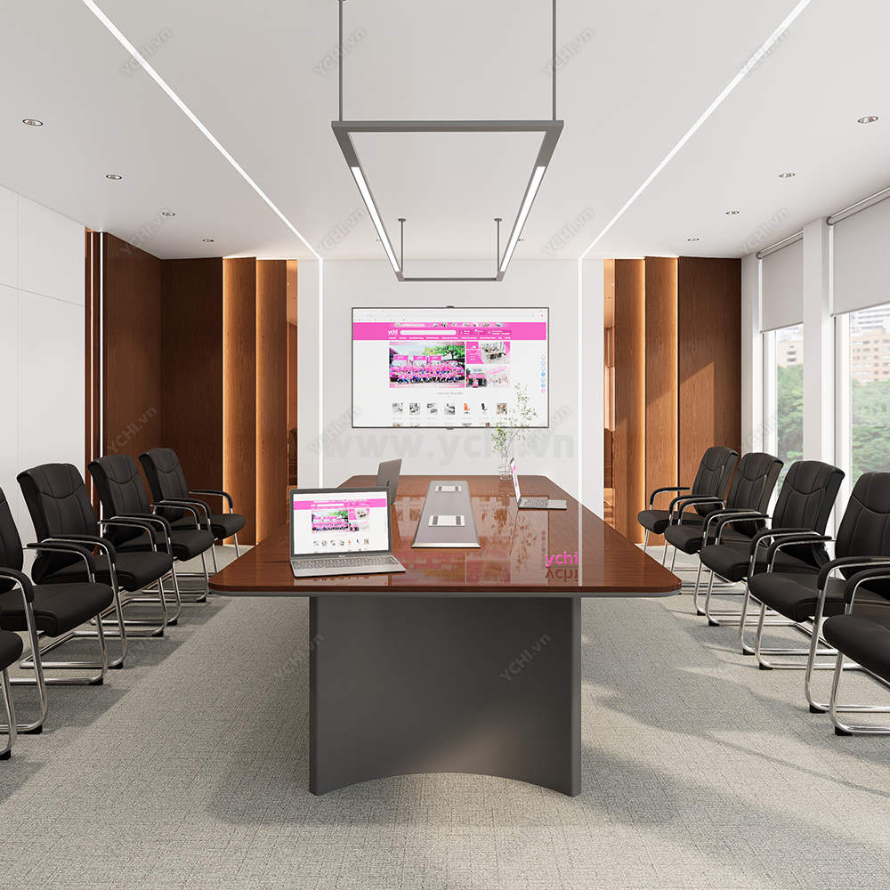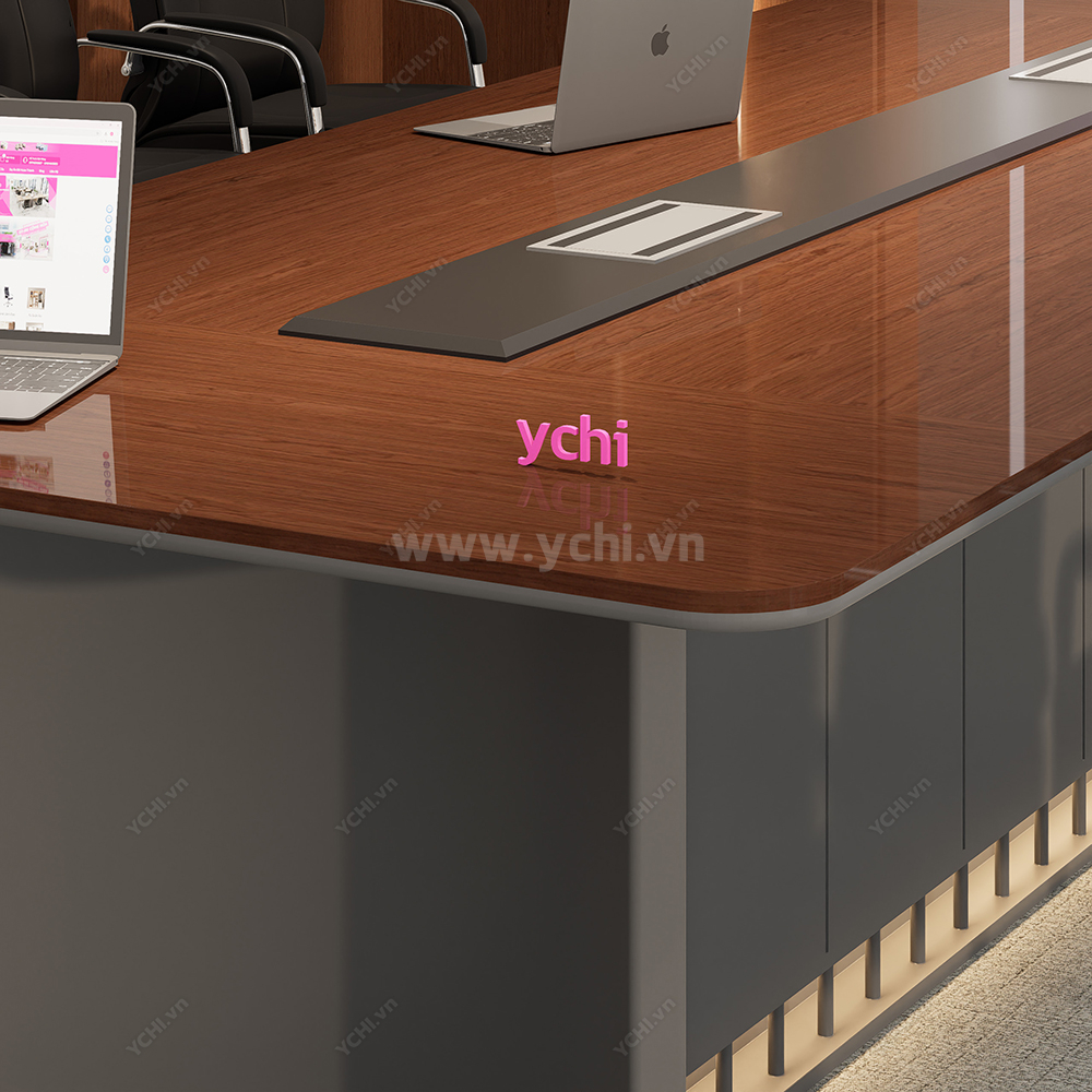 Trong không gian nghị sự thượng lưu, chiếc bàn họp không chỉ là nội thất mà còn là hiện thân của sự uy quyền và thành đạt. Bàn Họp YCHIMT083 là sự kết tinh hoàn mỹ giữa cốt gỗ MDF tiêu chuẩn và lớp phủ Veneer gỗ tự nhiên thượng hạng. Bề mặt bàn phô diễn những đường vân gỗ sống động, sắc nét với độ bóng mờ tinh xảo, mang lại vẻ đẹp xa hoa, ấm cúng nhưng vẫn vô cùng chuyên nghiệp. Kỹ thuật xử lý bề mặt cao cấp giúp lưu giữ trọn vẹn nét tinh túy của gỗ thật, tạo nên một không gian làm việc đẳng cấp và đầy cảm hứng.