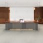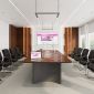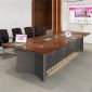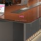 Thiết kế gây ấn tượng mạnh mẽ với mặt bàn đại bản dày dặn, kết hợp cùng chân đế khối vững chãi được tạo hình tinh xảo. Điểm nhấn đắt giá chính là hệ thống hộp điện âm bàn được tích hợp khéo léo với nắp đậy đồng điệu, giúp tối ưu hóa công nghệ mà không làm mất đi nét thẩm mỹ trơn láng của bề mặt. Với tông màu gỗ óc chó hay sồi trầm mặc, chiếc bàn họp Veneer này chính là lựa chọn chiến lược để nâng tầm không gian hội nghị và phòng họp hội đồng quản trị, để lại ấn tượng sâu sắc về sự thịnh vượng trong mắt đối tác.