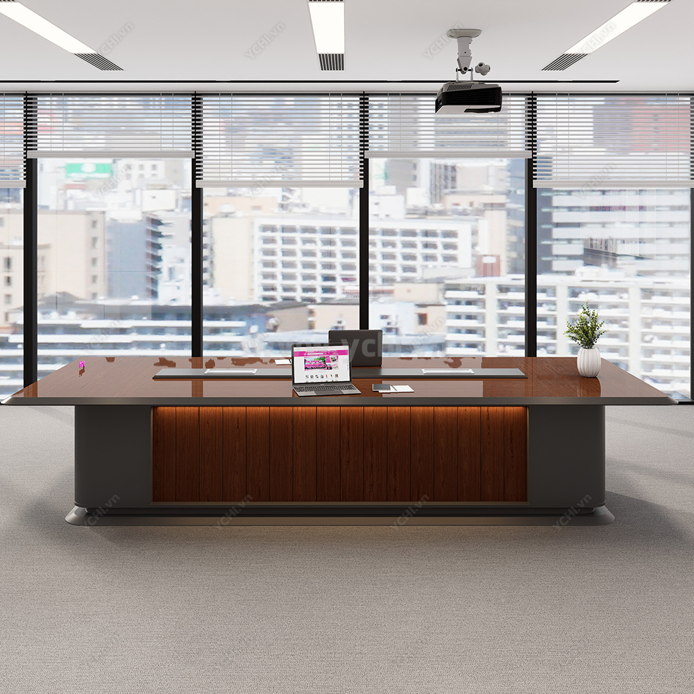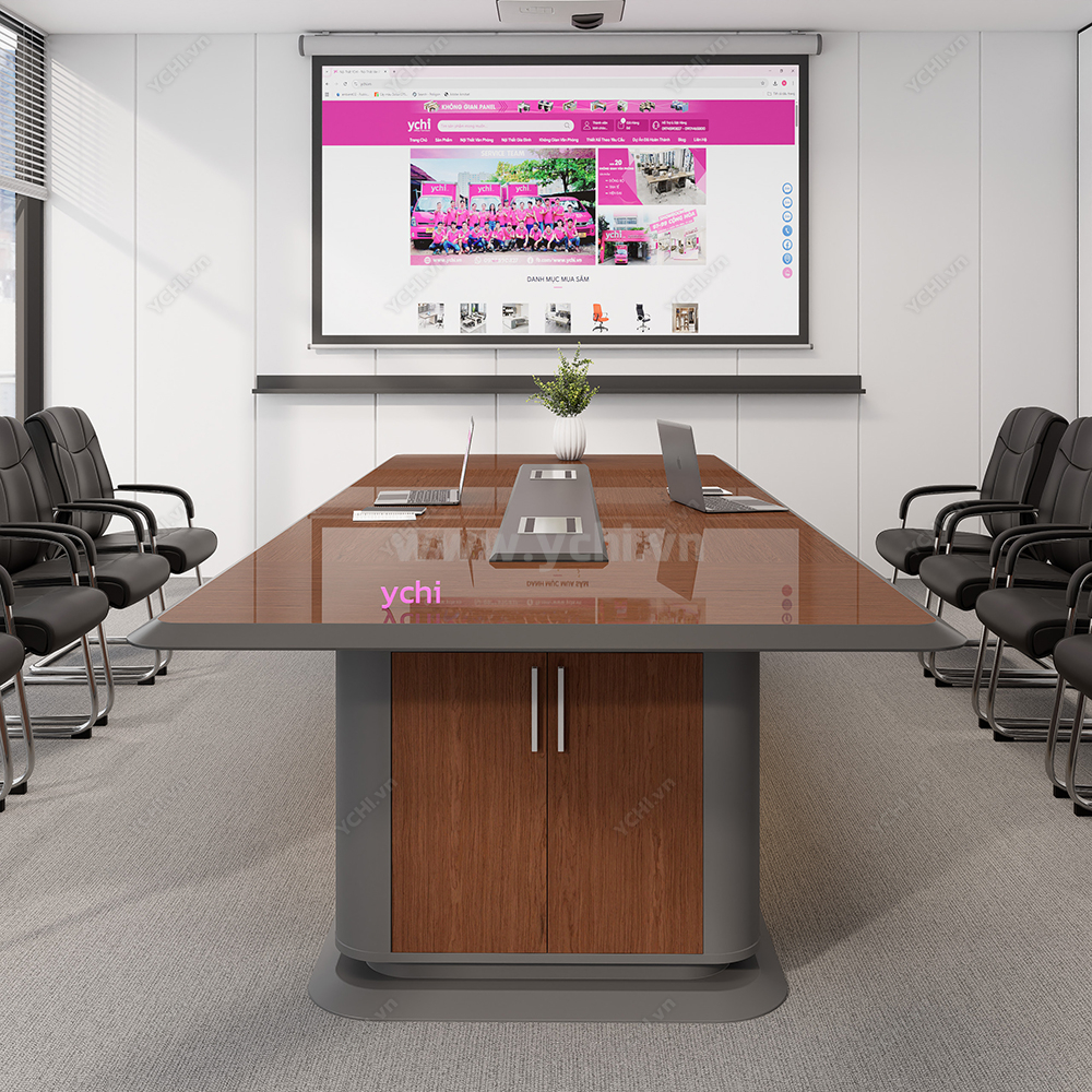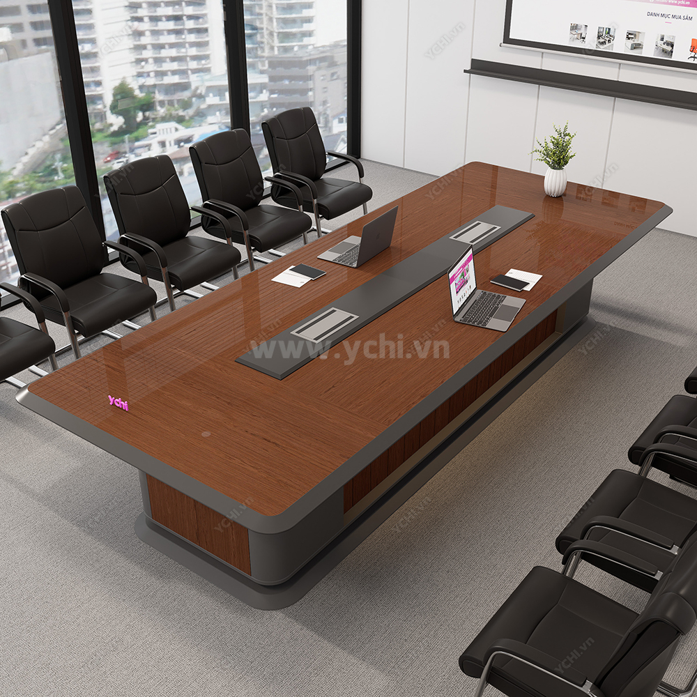 Sự tinh tế của một không gian làm việc chuyên nghiệp thường bắt nguồn từ những chi tiết tối giản nhưng đầy chiều sâu. Bàn Họp YCHIMT085 là sự kết hợp hoàn mỹ giữa cốt gỗ MDF tiêu chuẩn và lớp phủ Veneer gỗ tự nhiên thượng hạng, mang lại vẻ đẹp mộc mạc nhưng vô cùng thanh lịch. Bề mặt bàn phô diễn những đường vân gỗ sống động, được tuyển chọn kỹ lưỡng để tạo nên sự đồng nhất về màu sắc và họa tiết, mang đến cảm giác ấm cúng và sự thư thái cho mọi cuộc thảo luận.
