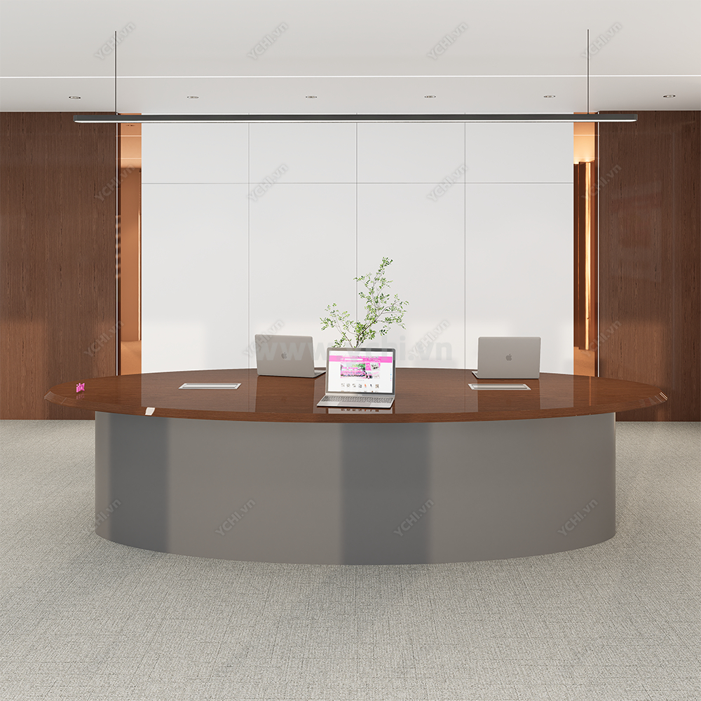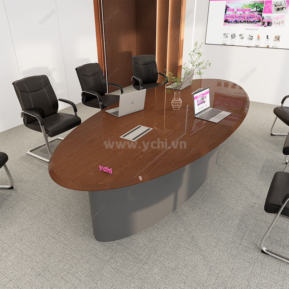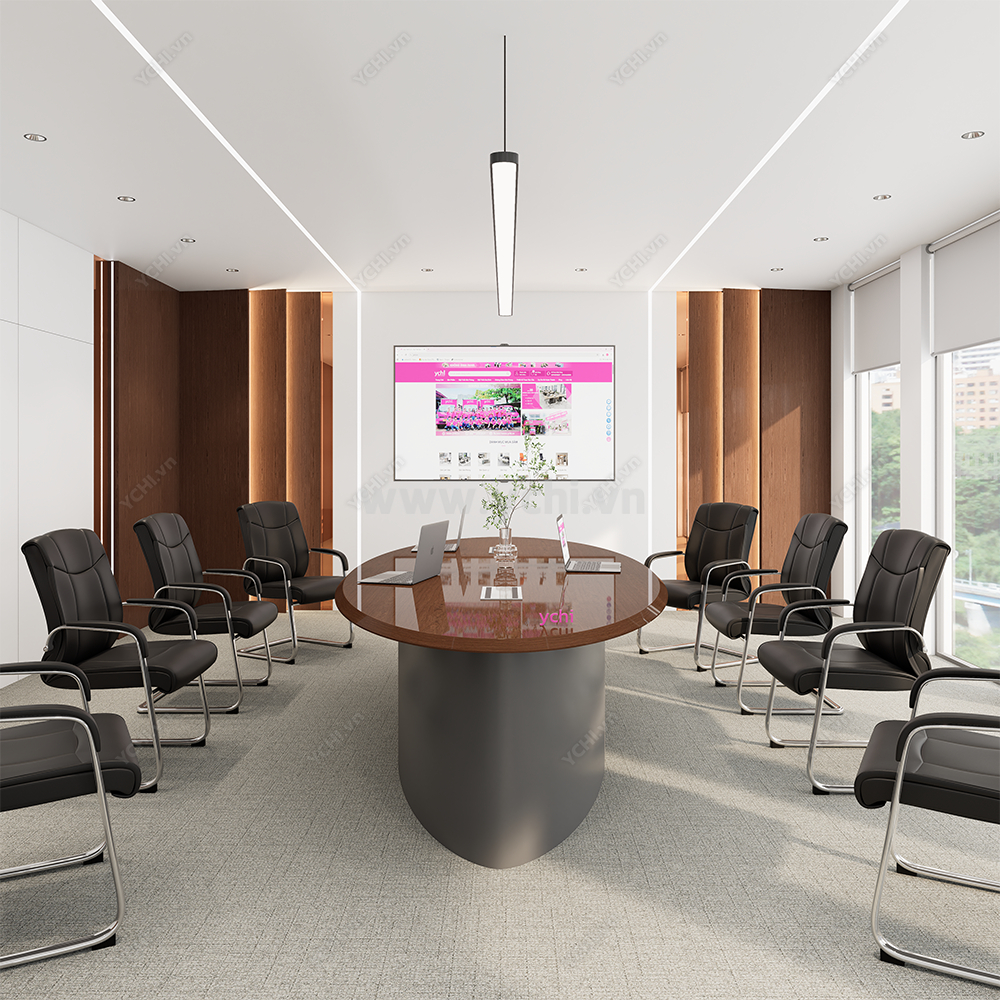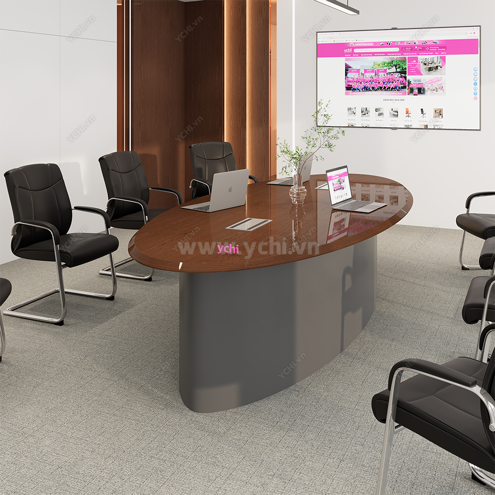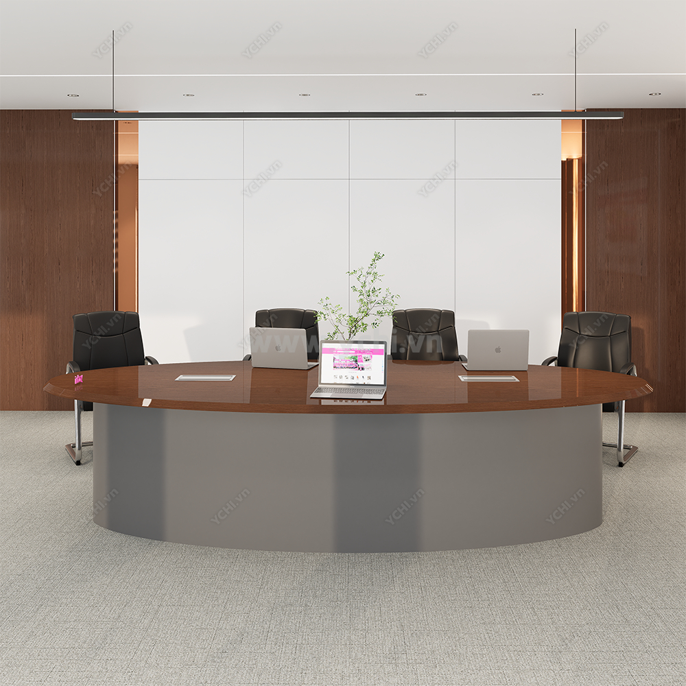 Trong không gian làm việc hiện đại, sự tối giản chính là thước đo của sự tinh tế và tư duy tập trung. Bàn Họp YCHIMT086 là sự giao thoa hoàn hảo giữa cốt gỗ MDF tiêu chuẩn và lớp phủ Veneer gỗ tự nhiên cao cấp, tạo nên một thực thể kiến trúc thanh lịch nhưng không kém phần ấm cúng. Bề mặt bàn phô diễn những đường vân gỗ sống động, được tuyển chọn kỹ lưỡng để tạo ra sự đồng nhất tuyệt đối, giúp loại bỏ mọi chi tiết thừa thãi và tôn vinh vẻ đẹp thuần khiết của vật liệu.