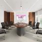 Thiết kế gây ấn tượng bởi những đường nét dứt khoát, mặt bàn đại bản phối hợp cùng hệ chân đế khối tối giản, tạo cảm giác vững chãi và thông thoáng cho căn phòng. Điểm chạm thông minh nằm ở hệ thống hộp điện âm bàn với nắp đậy phẳng mịn, giúp kết nối công nghệ một cách duyên dáng mà vẫn giữ trọn vẹn sự liền mạch của bề mặt gỗ. Với các tông màu trung tính như óc chó trầm hay sồi sáng, chiếc bàn họp Veneer này không chỉ là nơi thảo luận mà còn là một tác phẩm nghệ thuật tối giản, khẳng định gu thẩm mỹ hiện đại và chuyên nghiệp của doanh nghiệp.