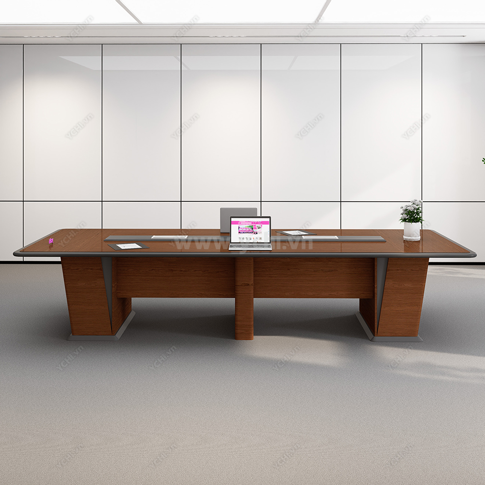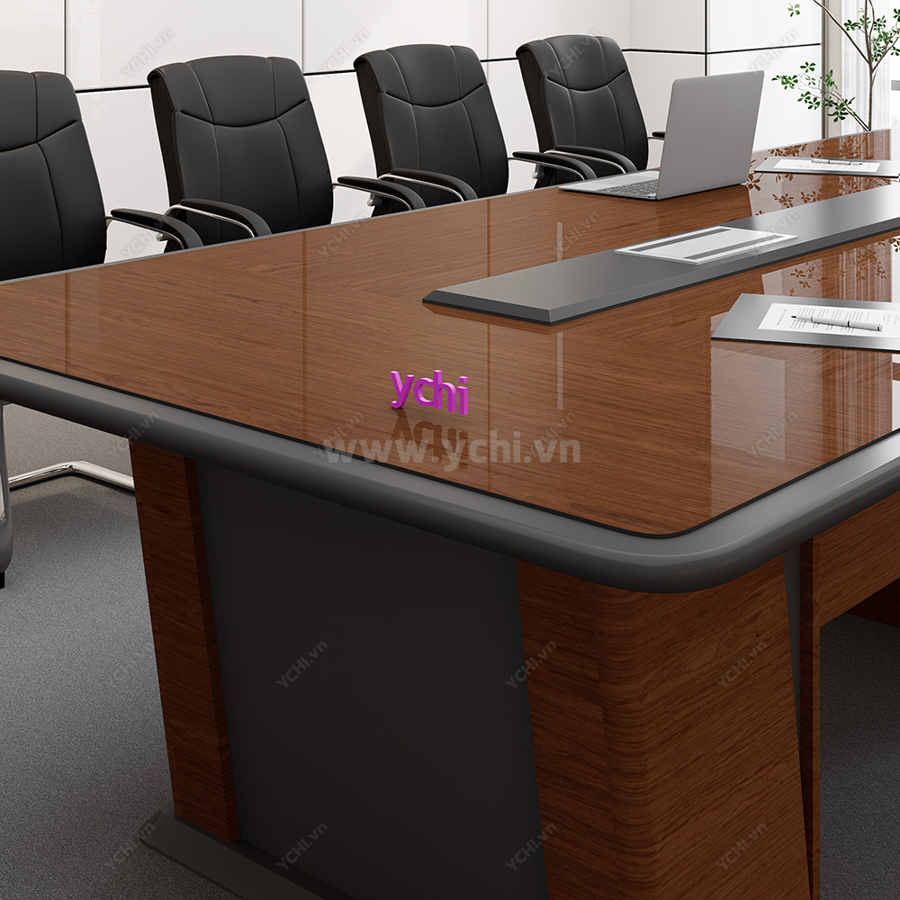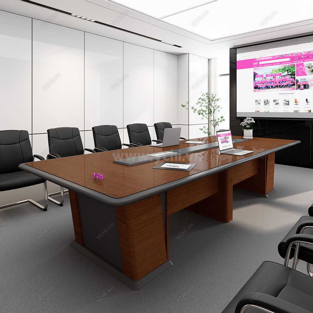 Trong kiến trúc nội thất văn phòng hạng sang, Bàn Họp YCHIMT091 là biểu tượng cho tầm vóc và sự thịnh vượng của doanh nghiệp. Sản phẩm gây ấn tượng mạnh mẽ nhờ sự kết hợp tinh tuyển giữa cốt gỗ MDF bền bỉ và lớp phủ Veneer gỗ tự nhiên cao cấp. Bề mặt bàn phô diễn những đường vân gỗ sống động, mang lại chiều sâu màu sắc trung thực cùng độ bóng mờ quý phái, tạo nên một không gian hội nghị vừa uy quyền, vừa ấm cúng.