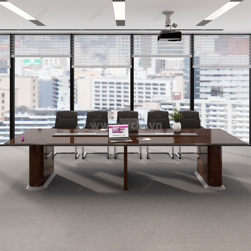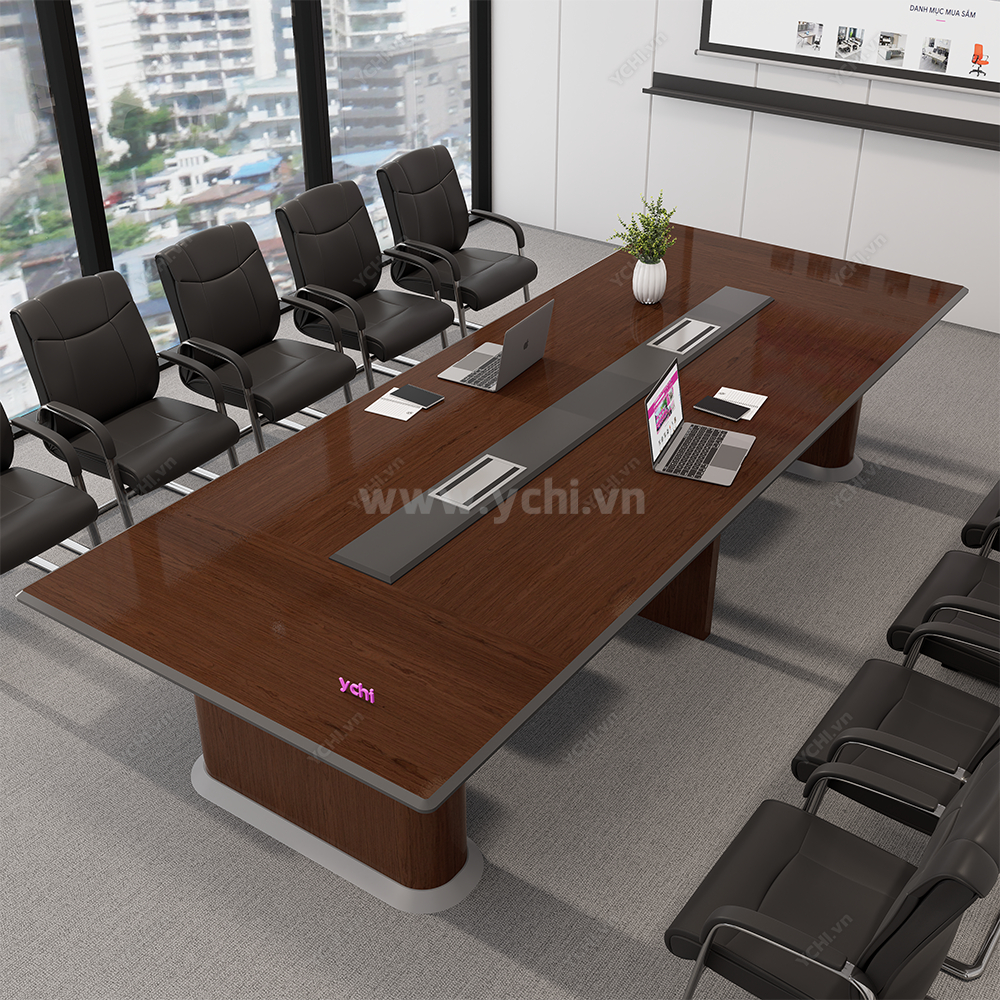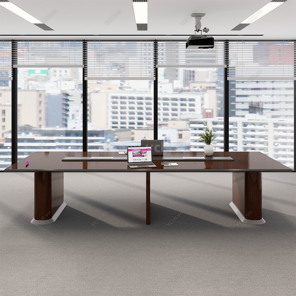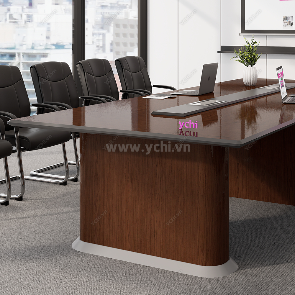 Sự tinh tế của một không gian làm việc chuyên nghiệp thường hiện hữu trong những chi tiết tối giản nhưng đầy chiều sâu kiến trúc. Bàn Họp YCHIMT095 là minh chứng cho kỹ nghệ chế tác thượng thừa khi kết hợp cốt gỗ MDF bền bỉ cùng lớp phủ Veneer gỗ tự nhiên tuyển chọn. Bề mặt bàn phô diễn những hệ vân gỗ sống động, mượt mà với độ bóng mờ nhẹ nhàng, tạo nên một dải không gian phẳng mịn tuyệt đối, mang lại cảm giác thư thái và ấm cúng cho mọi cuộc thảo luận quan trọng.