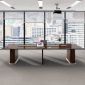 Thiết kế bàn gây ấn tượng mạnh mẽ bởi những đường nét dứt khoát, các góc cạnh được bo cong mềm mại hoặc vát cạnh trau chuốt, xóa tan sự thô cứng của các dòng nội thất văn phòng truyền thống. Điểm chạm tinh tế nhất chính là sự liền mạch tuyệt đối của bề mặt gỗ, tôn vinh vẻ đẹp nguyên bản và thuần khiết của thiên nhiên. Với sự phối hợp nhịp nhàng giữa tông màu gỗ tự nhiên trầm ấm và hệ chân đế được tạo hình thanh thoát, chiếc bàn không chỉ là một món đồ nội thất mà còn là một tác phẩm nghệ thuật, khẳng định gu thẩm mỹ tinh xảo và chuyên nghiệp của doanh nghiệp.
