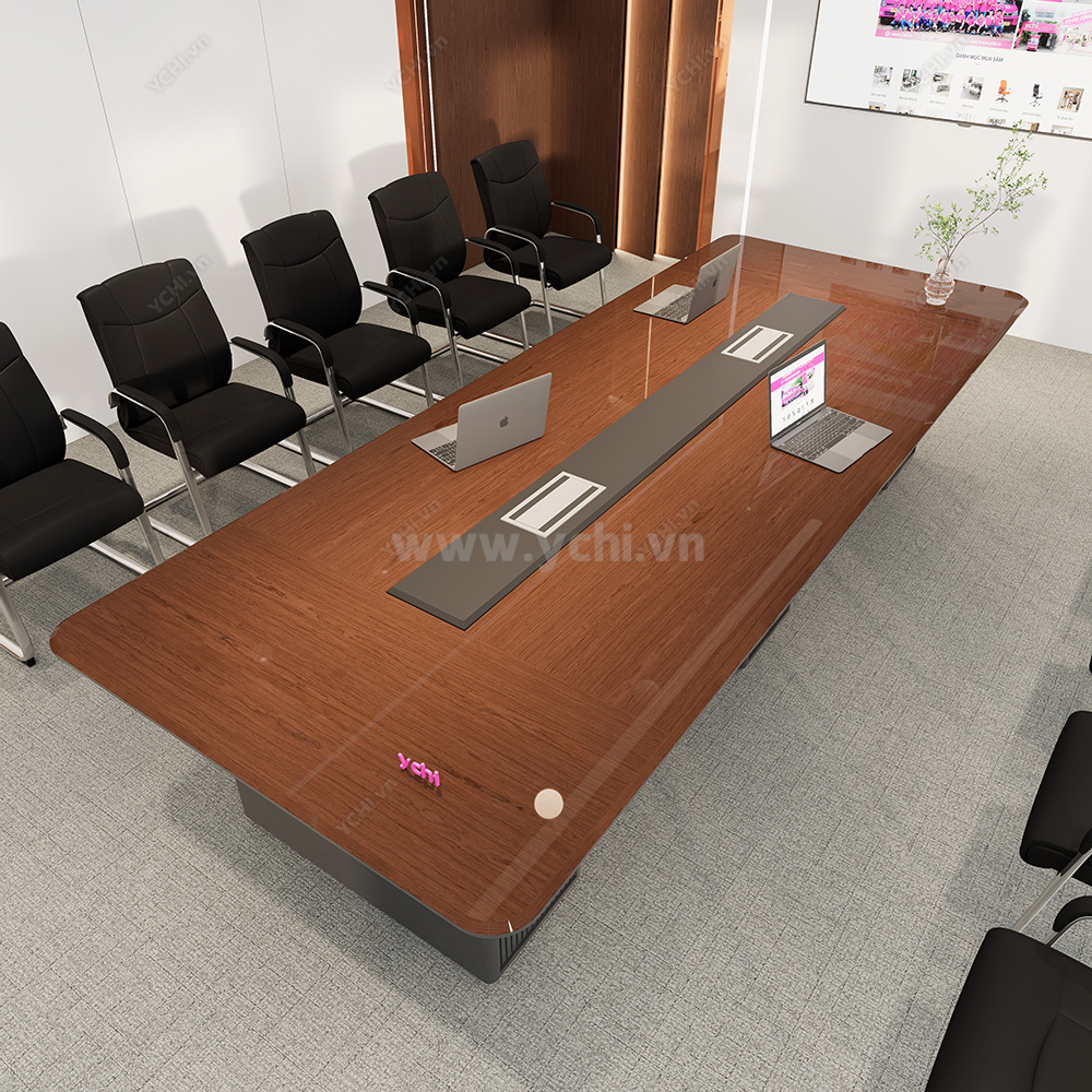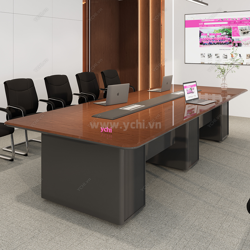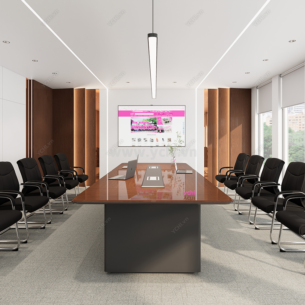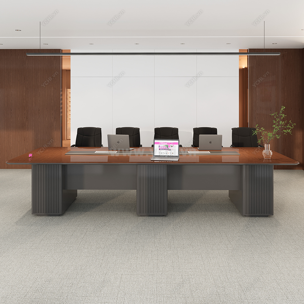 Trong không gian quản trị chiến lược, chiếc bàn họp không chỉ đơn thuần là nội thất mà còn là hiện thân của vị thế doanh nghiệp. Bàn Họp YCHIMT097 là sự kết tinh hoàn mỹ giữa cốt gỗ MDF bền bỉ và lớp phủ Veneer gỗ tự nhiên cao cấp, lưu giữ trọn vẹn những hệ vân gỗ sống động và sắc nét. Bề mặt bàn phô diễn độ bóng mờ tinh xảo, mang lại chiều sâu màu sắc trung thực và cảm giác sang trọng tuyệt đối ngay từ cái nhìn đầu tiên.