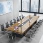 Bàn Họp YCHIMT033 có chân bàn là bộ khung gỗ, giúp gia tăng tính sang trọng, thẩm mỹ của sản phẩm. Chất liệu gỗ công nghiệp MDF cao cấp phủ Melamine bền màu, chống ẩm là yếu tố quyết định đến chất lượng vượt trội cũng như vẻ đẹp xuất sắc của sản phẩm. Thêm vào đó là mặt bàn dày, càng mang lại cho sản phẩm một kết cấu cực kì bền bỉ, mạnh mẽ được nhiều khách hàng yêu thích.