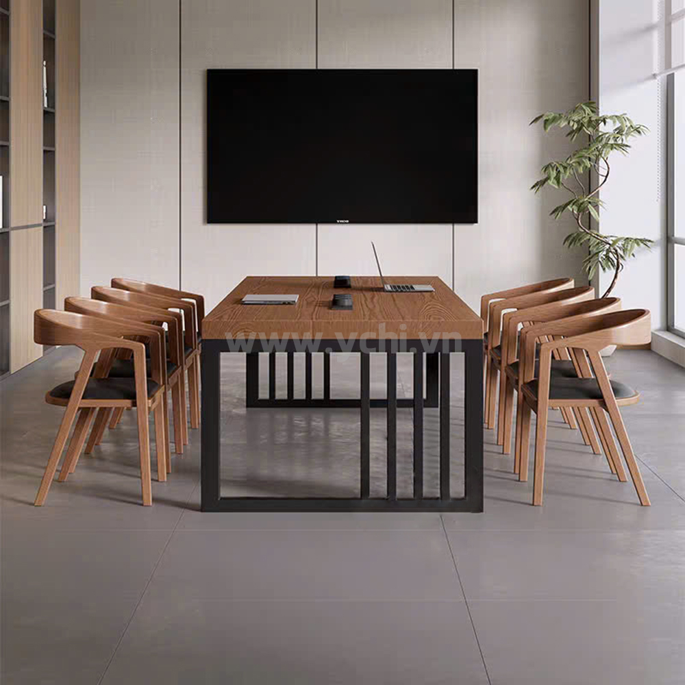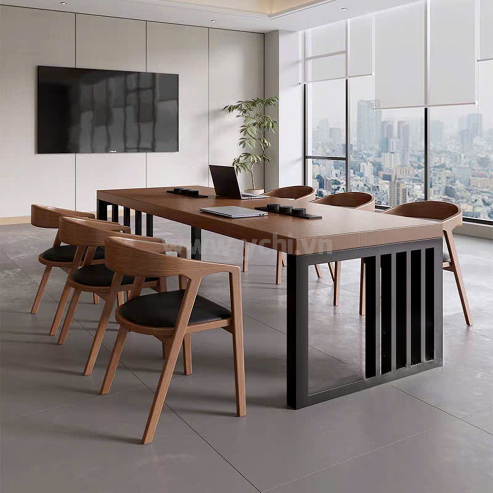 Bàn Họp YCHIMT069 là minh chứng hoàn hảo cho triết lý thiết kế "Less is More", nơi sự đơn giản được nâng tầm thành đẳng cấp. Mặt bàn sử dụng gỗ công nghiệp cao cấp phủ Melamine với những đường vân gỗ tự nhiên sắc nét, mang lại cảm giác ấm áp và sang trọng. Điểm nhấn ấn tượng chính là hệ khung chân sắt sơn tĩnh điện thanh mảnh nhưng vô cùng vững chãi, được xử lý bề mặt mịn màng với tông màu đen mờ hoặc ghi xám tinh tế. Sự kết hợp giữa chất liệu gỗ bền bỉ và kim loại hiện đại tạo nên một không gian họp thoáng đạt và chuyên nghiệp. Đây là lựa chọn lý tưởng cho những doanh nghiệp yêu thích vẻ đẹp thanh lịch, không cầu kỳ nhưng vẫn toát lên vị thế của một đơn vị dẫn đầu.