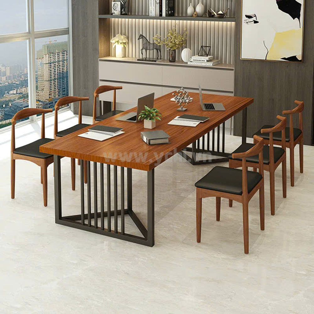 Bàn Họp YCHIMT072 đại diện cho xu hướng nội thất văn phòng bền vững, kết hợp giữa thẩm mỹ cao cấp và tính ứng dụng. Mặt bàn gỗ công nghiệp phủ melamine cao cấp không chỉ đẹp mà còn có khả năng kháng khuẩn và dễ dàng vệ sinh. Hệ chân sắt sơn tĩnh điện dạng khung độc lập mang lại sự ổn định tuyệt đối, giúp mặt bàn rộng lớn không bị võng hay rung lắc khi sử dụng nhiều thiết bị điện tử. Thiết kế tối giản loại bỏ mọi chi tiết thừa, tập trung vào công năng và sự thoải mái cho người ngồi. Sự hiện diện của chiếc bàn trong phòng họp mang lại một cảm giác an tâm và chuyên nghiệp, là nền tảng vững chắc cho những hợp đồng hợp tác thành công.