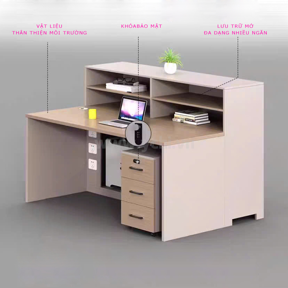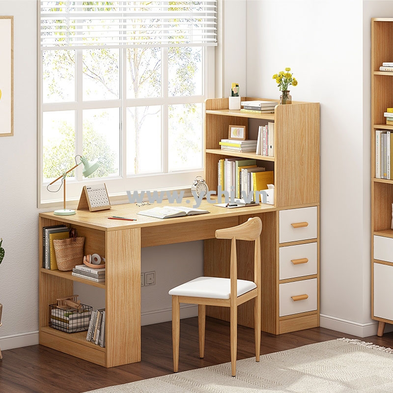 Hình dung đơn giản: một chiếc bàn vừa đặt laptop, vừa để được sách tham khảo, hộp đựng giấy tờ, đèn học và phụ kiện — tất cả trong một khối đồng nhất, gọn gàng và có tổ chức.