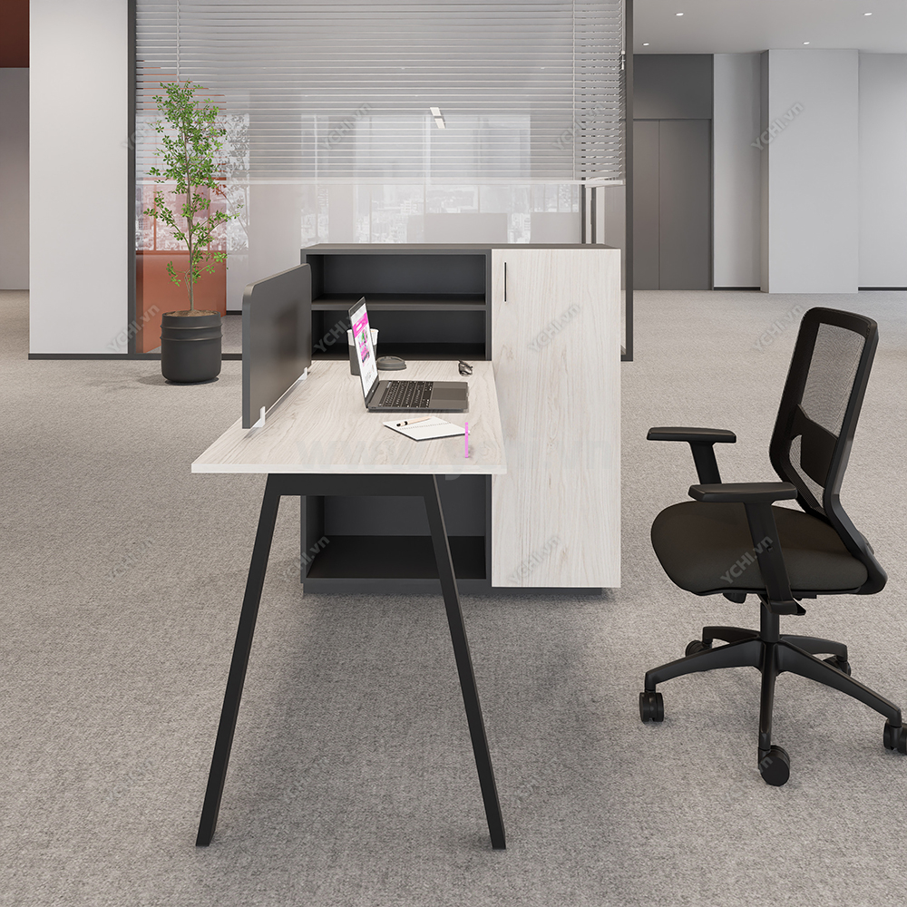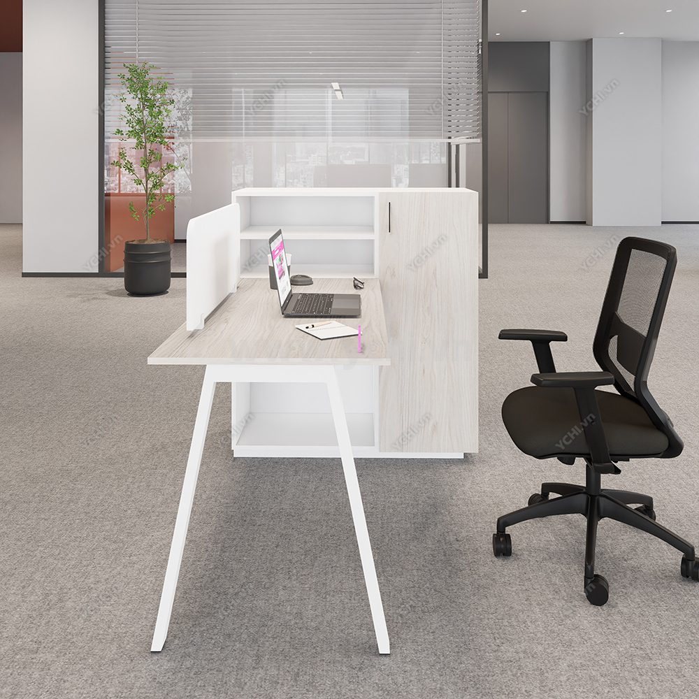 Nâng tầm hiệu suất công việc với Bàn Làm Việc Đơn Không Gian Atom Space YCHIAS012 hiện đại – sự kết hợp hoàn hảo giữa thẩm mỹ tối giản và công năng thông minh. Sản phẩm gây ấn tượng mạnh bởi mặt bàn gỗ màu đa dạng, kết hợp hài hòa cùng hệ thống chân sắt sơn tĩnh điện trắng được tạo dáng hình chữ A cách điệu, mang lại sự vững chãi nhưng vẫn giữ được nét thanh thoát cho không gian văn phòng. Điểm cộng lớn nhất chính là thiết kế tích hợp tủ ngay dưới mặt bàn, giúp bạn tối ưu hóa diện tích lưu trữ tài liệu và đồ dùng cá nhân một cách ngăn nắp mà không cần tốn thêm không gian cho kệ rời. Để hỗ trợ khả năng tập trung tối đa, bàn được trang bị vách ngăn lửng bo góc mềm mại, tạo ra khoảng riêng tư cần thiết trong môi trường làm việc chung nhưng vẫn đảm bảo sự thông thoáng, kết nối. Với cấu trúc bền bỉ và kiểu dáng bắt kịp xu hướng nội thất văn phòng, đây không chỉ là một chiếc bàn làm việc thông thường mà còn là giải pháp kiến tạo không gian chuyên nghiệp, khơi nguồn cảm hứng sáng tạo mỗi ngày cho người sử dụng.