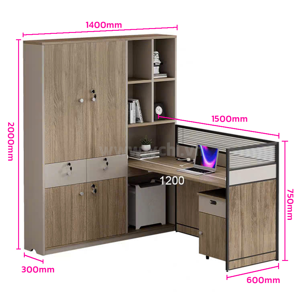 Kích thước tủ: 1400x300x2000 (mm); Tủ di động: 400x450x600 (mm)