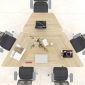 Bộ Bàn Làm Việc Không Gian Portable Space YCHIPS005 (Module 5 Kiểu 1) có kiểu dáng hiện đại, thiết kế mặt bàn hình thang cho phép người dùng có thể lắp ghép từ các bàn đơn lẻ thành cụm bàn có kích thước, hình dáng khác nhau tùy vào quy mô và mục đích sử dụng. Mặt bàn gỗ MDF phủ Melamine được xử lý và hoàn thiện chống thấm nước, kết hợp chân bàn sắt Oval được hàn cố định chắc chắn có khả năng chịu lực tốt, khung chân được phủ lớp sơn tĩnh điện chống rỉ sét, yên tâm sử dụng trong thời gian dài.