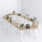 Bộ Bàn Làm Việc Không Gian Portable Space YCHIPS011 (Module 10) có kiểu dáng hiện đại, thiết kế mặt bàn hình thang cho phép người dùng có thể lắp ghép từ các bàn đơn lẻ thành cụm bàn có kích thước, hình dáng khác nhau tùy vào quy mô và mục đích sử dụng. Mặt bàn gỗ MDF phủ Melamine được xử lý và hoàn thiện chống thấm nước, kết hợp chân bàn sắt Oval được hàn cố định chắc chắn có khả năng chịu lực tốt, khung chân được phủ lớp sơn tĩnh điện chống rỉ sét, yên tâm sử dụng trong thời gian dài.