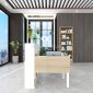 Bàn bao gồm: 1 tủ liền cạnh bàn, 1 vách ngăn, 1 yếm che, lỗ dẫn điện trên mặt bàn