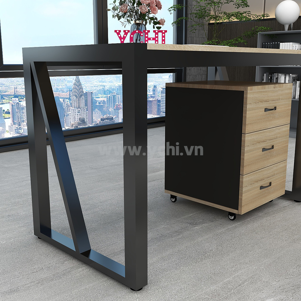 Bàn Làm Việc Không Gian V Space YCHIVS001 với mặt bàn và chân tủ được làm từ gỗ MDF phủ Melamine cho bề mặt sản phẩm rất đẹp mắt, chống nước. Kết hợp hệ khung chân thép sơn tĩnh điện chống ăn mòn hoá học, đảm bảo độ bền cao.
