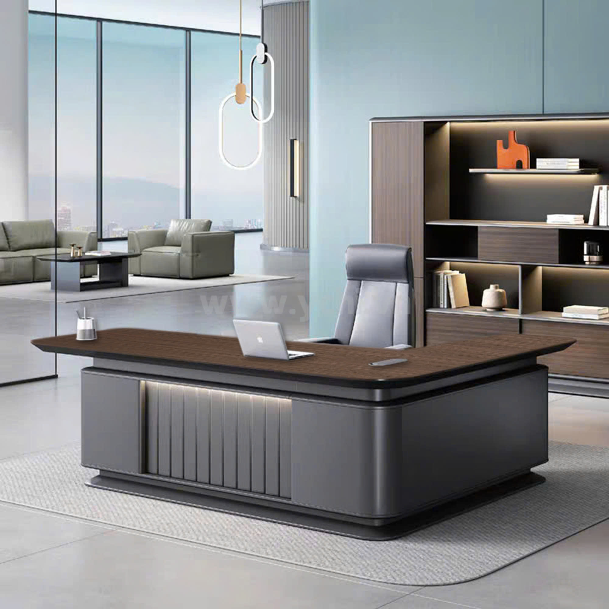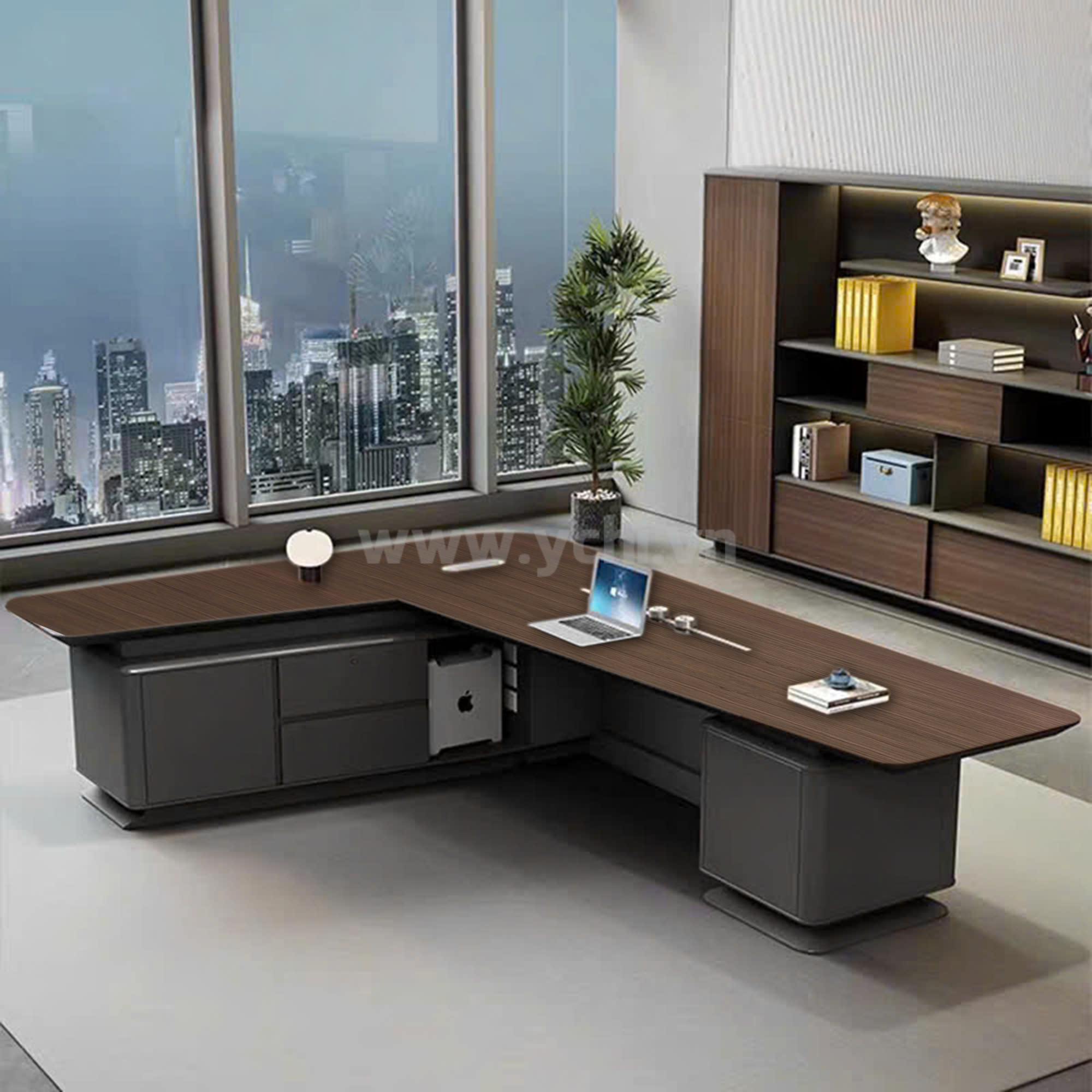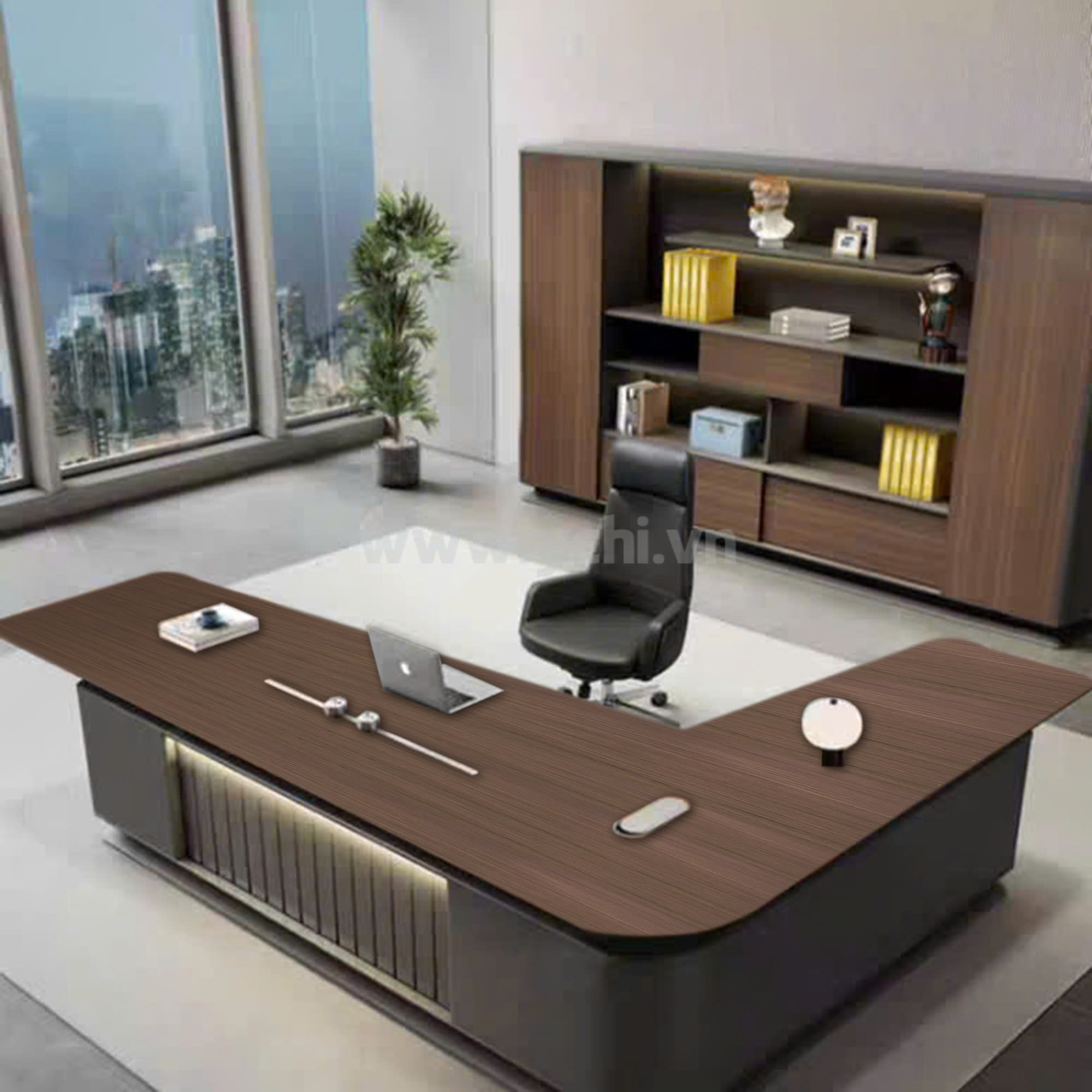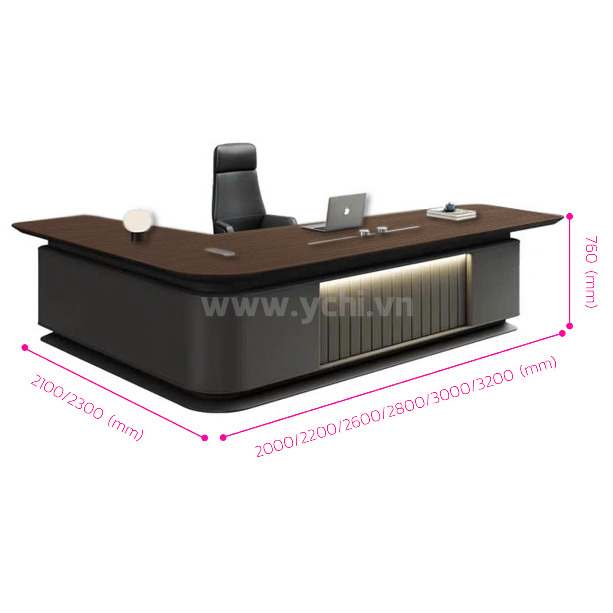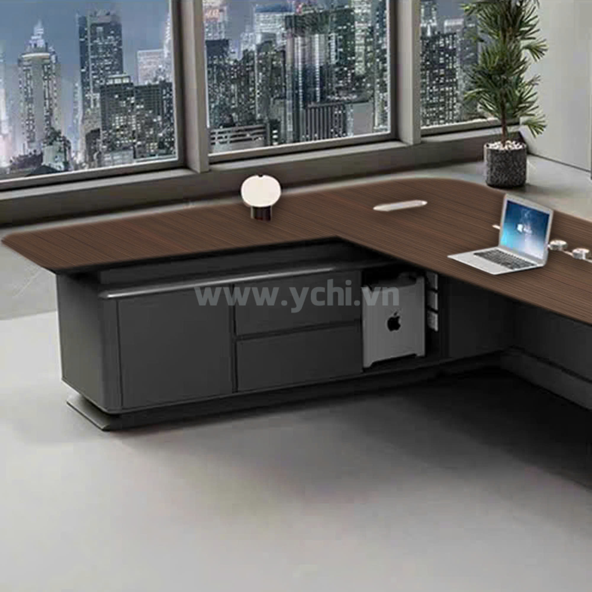 Bàn Lãnh Đạo YCHIMD125 có toàn bộ thân bàn được sản xuất từ gỗ công nghiệp MDF phủ Melamine, nên bàn vừa có kết cấu chắc chắn vừa có tính thẩm mỹ rất cao. Bàn lãnh đạo gỗ này là một siêu phẩm đang rất được ưa chuộng hiện nay tại nội thất YCHI. Bàn được thiết kế thông minh, kiểu dáng thanh lịch phù hợp với cả sếp nam và nữ. Sản phẩm có kiểu dáng hình chữ L, có tủ liền vô cùng tiện lợi. Bàn có kích thước tương đối lớn mang lại không gian làm việc rộng rãi, thoải mái cũng như tạo nên sự quyền lực cho người lãnh đạo.