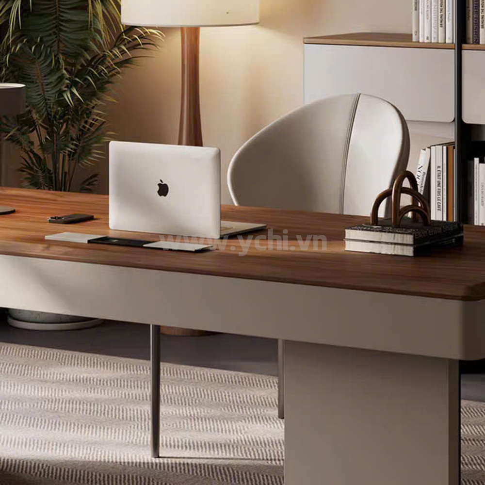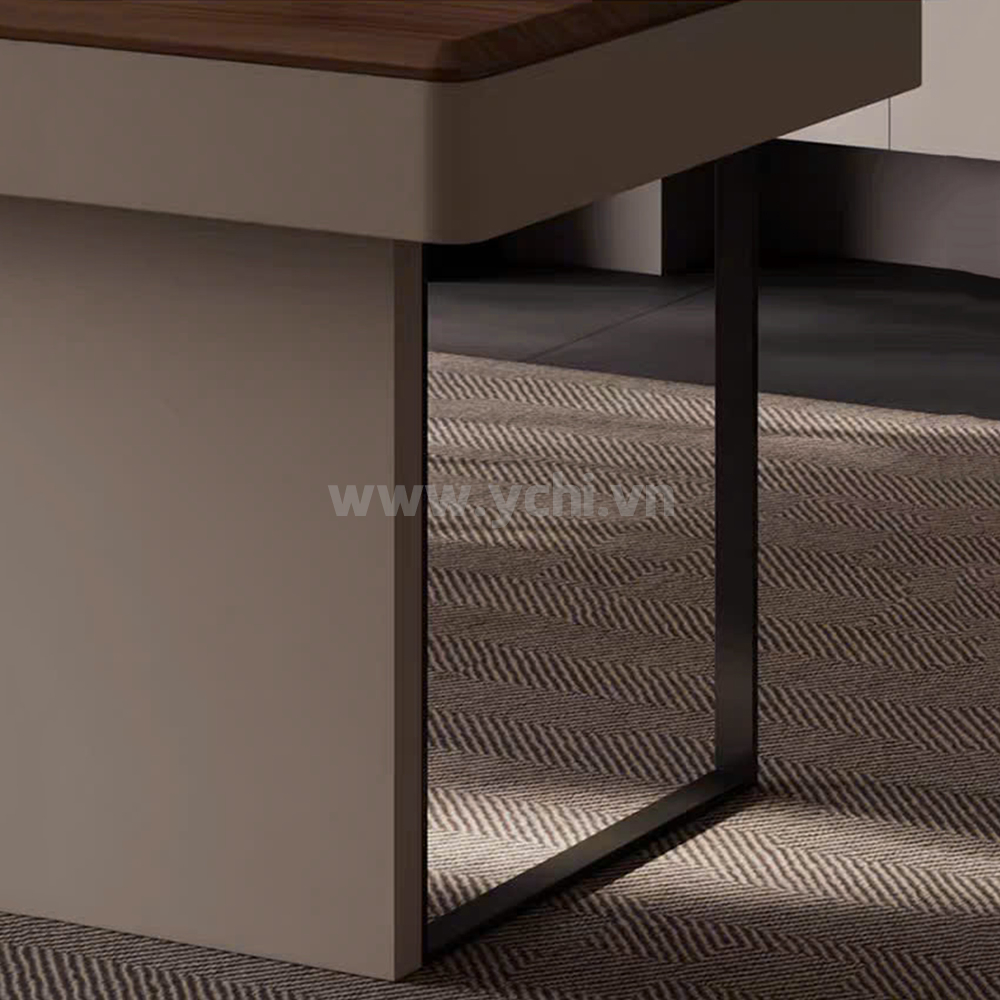 Bàn Lãnh Đạo YCHIMD137 được làm từ gỗ công nghiệp, đặc biệt phù hợp với khí hậu nóng ẩm. Sản phẩm cam kết độ bền cao, không bị phồng rộp, bong tróc bề mặt. Thiết kế bàn làm việc giám đốc hiện đại với các đường nét mạnh mẽ, dứt khoát, thể hiện sự quyết đoán của người lãnh đạo. Xem ngay các mẫu bàn làm việc giám đốc chống ẩm tốt nhất trên thị trường!