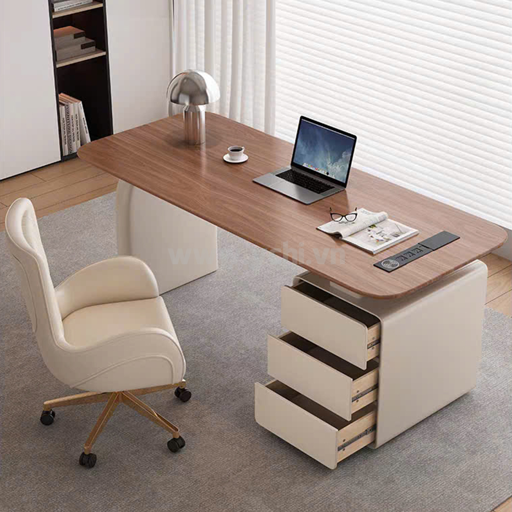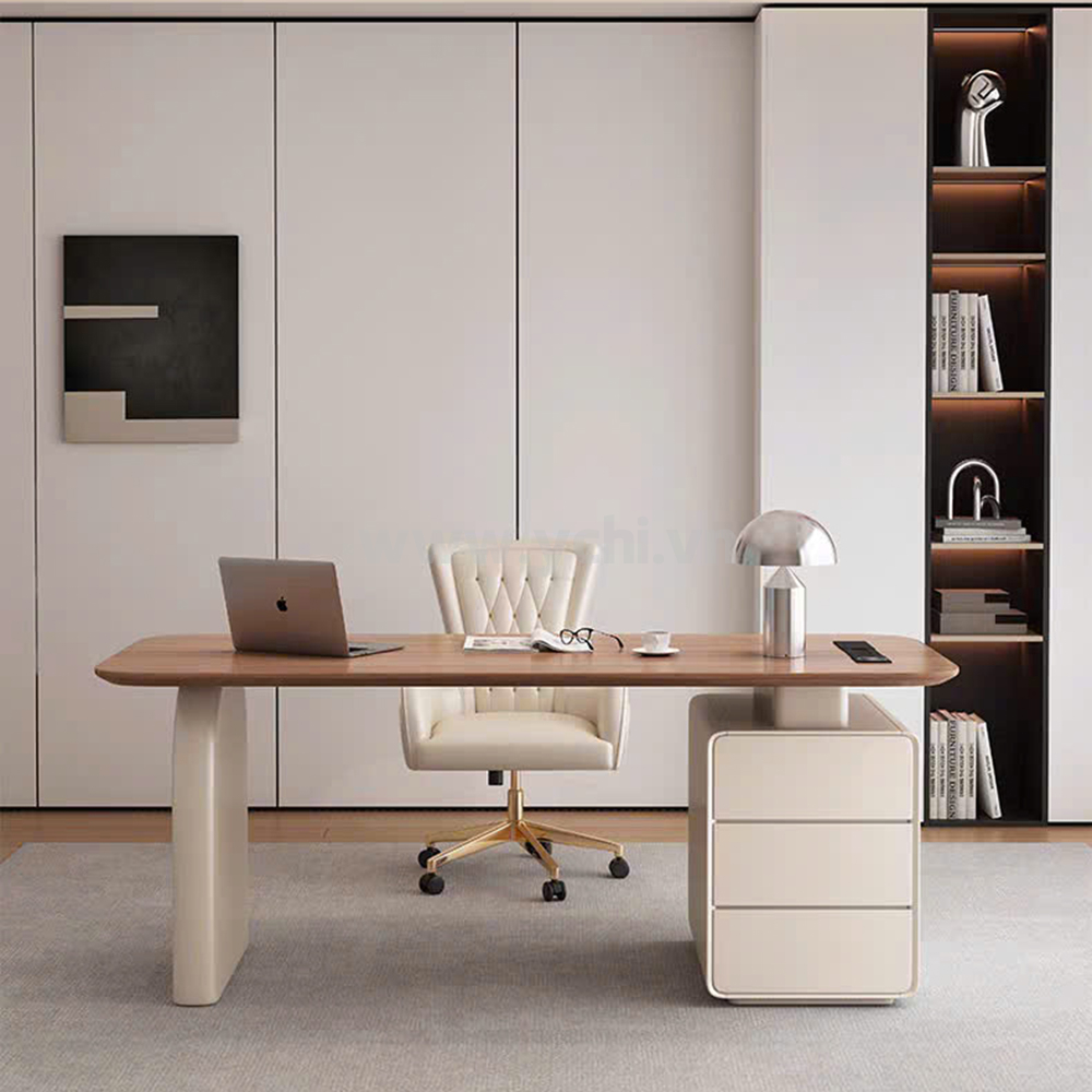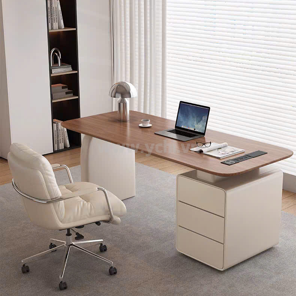Tối đa hóa không gian phòng làm việc với Bàn Lãnh Đạo YCHIMD142 gỗ công nghiệp thiết kế đa năng. Các mẫu bàn giám đốc hiện đại được tích hợp tủ kệ liền mạch, giúp giải quyết triệt để vấn đề lưu trữ tài liệu mà vẫn giữ được sự gọn gàng, chuyên nghiệp. Chất liệu gỗ công nghiệp bền bỉ, dễ dàng tạo hình các đường cong hoặc góc cạnh phức tạp, mang lại vẻ ngoài tinh xảo. Đây là giải pháp hoàn hảo cho nội thất văn phòng diện tích vừa và nhỏ. Hãy chọn bàn làm việc lãnh đạo thông minh để biến không gian của bạn thành trung tâm quyền lực.