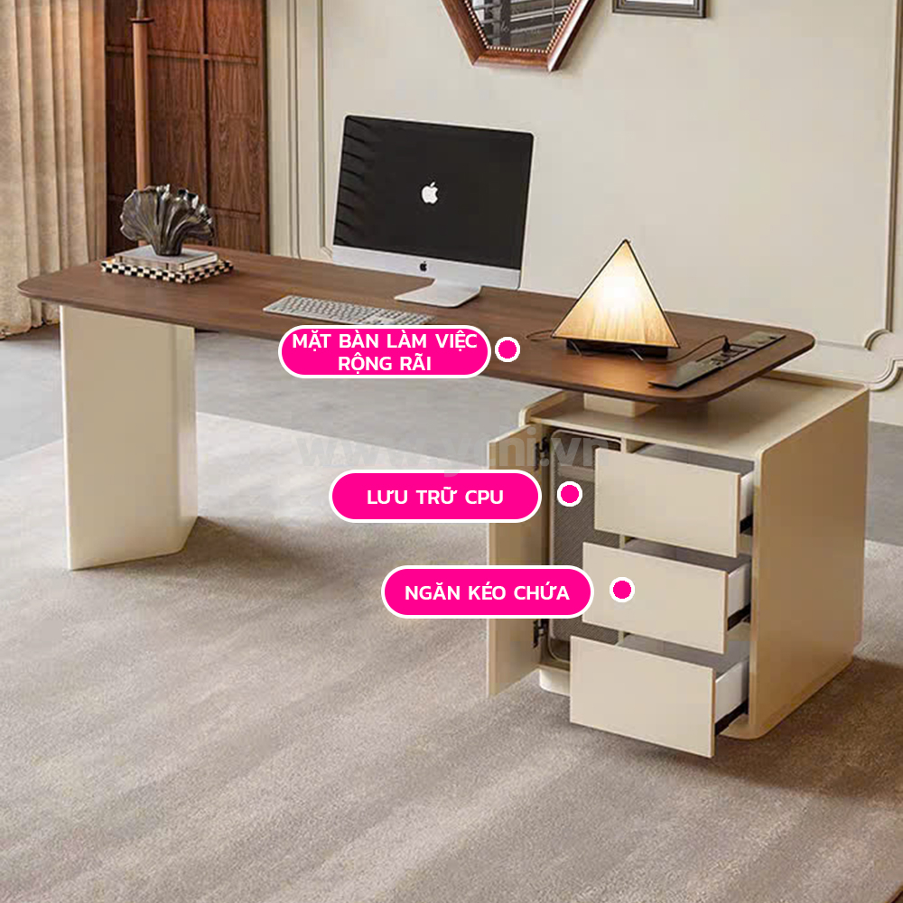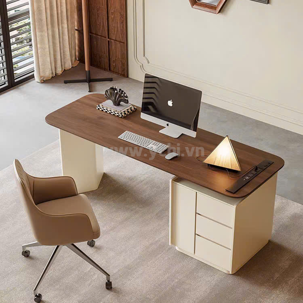 Bàn Lãnh Đạo YCHIMD145 gỗ công nghiệp với cam kết về tuổi thọ sản phẩm. Nhờ quy trình sản xuất hiện đại, cốt gỗ được nén ép dưới áp lực cao, giúp bàn làm việc giám đốc chống chịu tốt với va đập và mài mòn hàng ngày. Bạn sẽ không cần lo lắng về việc thay thế bàn làm việc lãnh đạo thường xuyên. Đây là khoản đầu tư thông minh, tiết kiệm chi phí bảo trì. Khám phá các mẫu bàn giám đốc độ bền vượt trội.