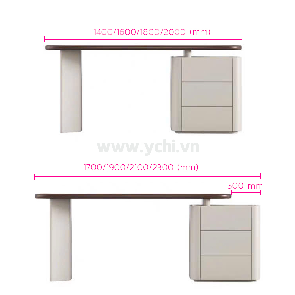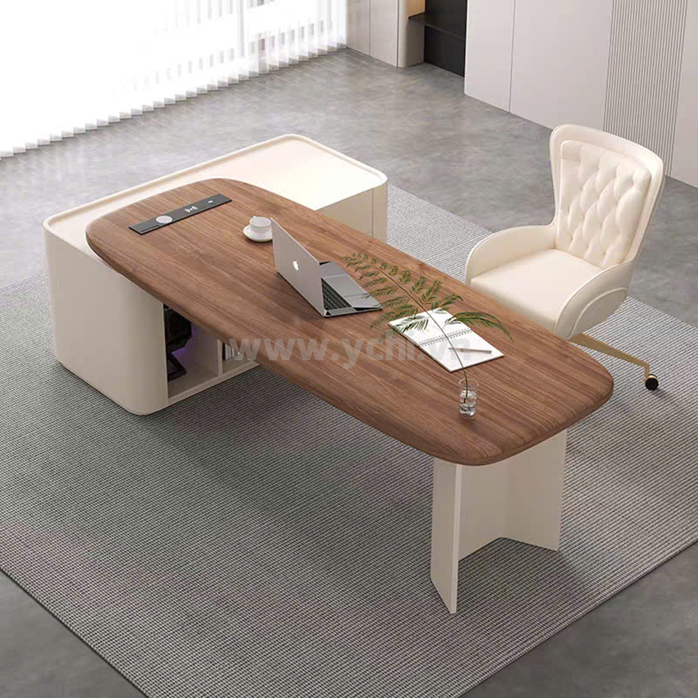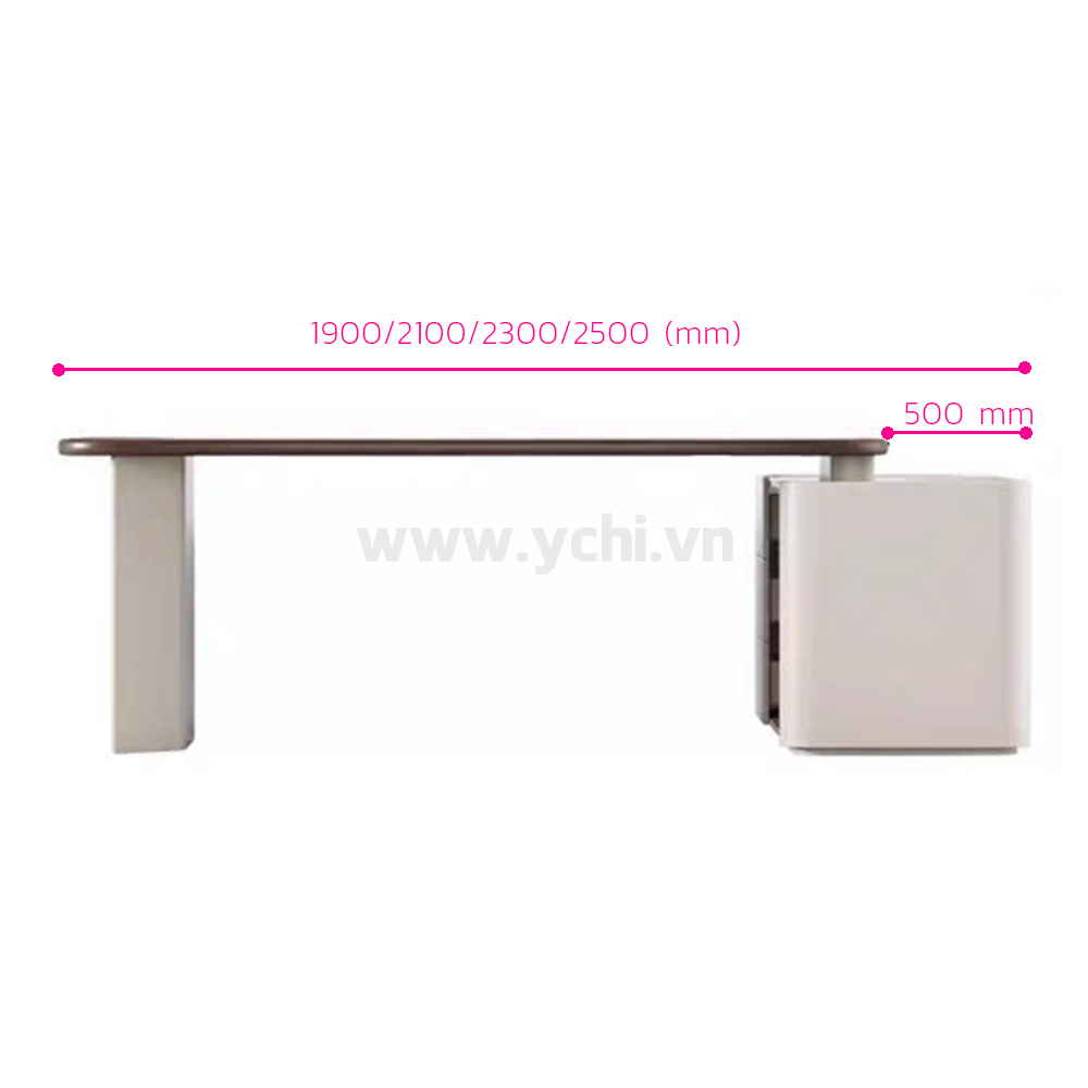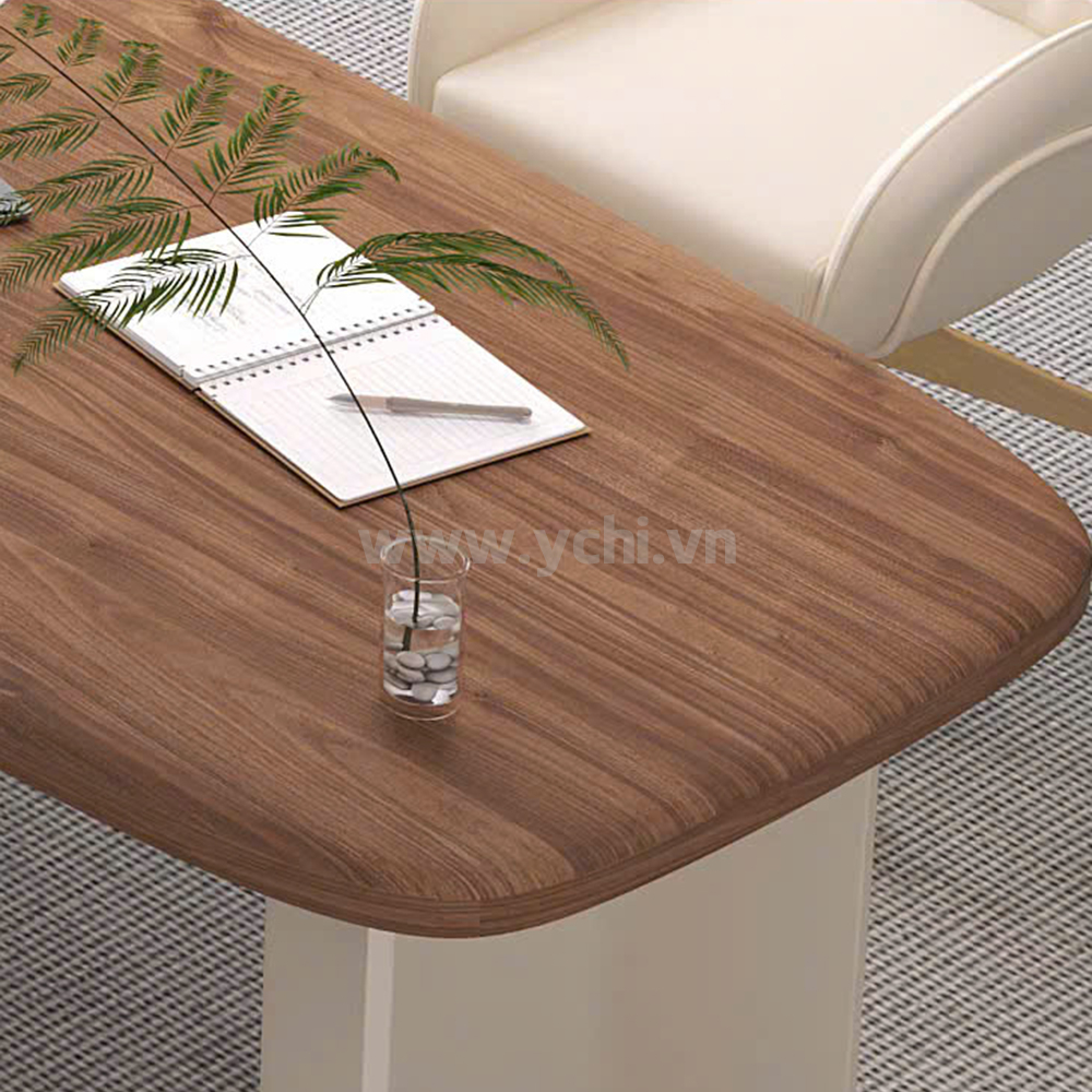 Bàn Lãnh Đạo YCHIMD147 mang lại cảm giác ấm áp và sang trọng như gỗ tự nhiên, chiếc bàn sử dụng gỗ công nghiệp lõi MDF được phủ lớp Veneer vân gỗ cao cấp. Kích thước lớn, mặt bàn rộng rãi, có không gian thoải mái để đặt máy tính, tài liệu và trang trí cá nhân. Điểm nhấn là các chi tiết kim loại (như tay nắm, chân bàn) được mạ Chrome hoặc sơn tĩnh điện, tạo nên sự tương phản nổi bật. Hệ thống hộc tủ và ngăn kéo tích hợp giúp tổ chức tài liệu gọn gàng, thể hiện sự chuyên nghiệp và ngăn nắp của người điều hành.