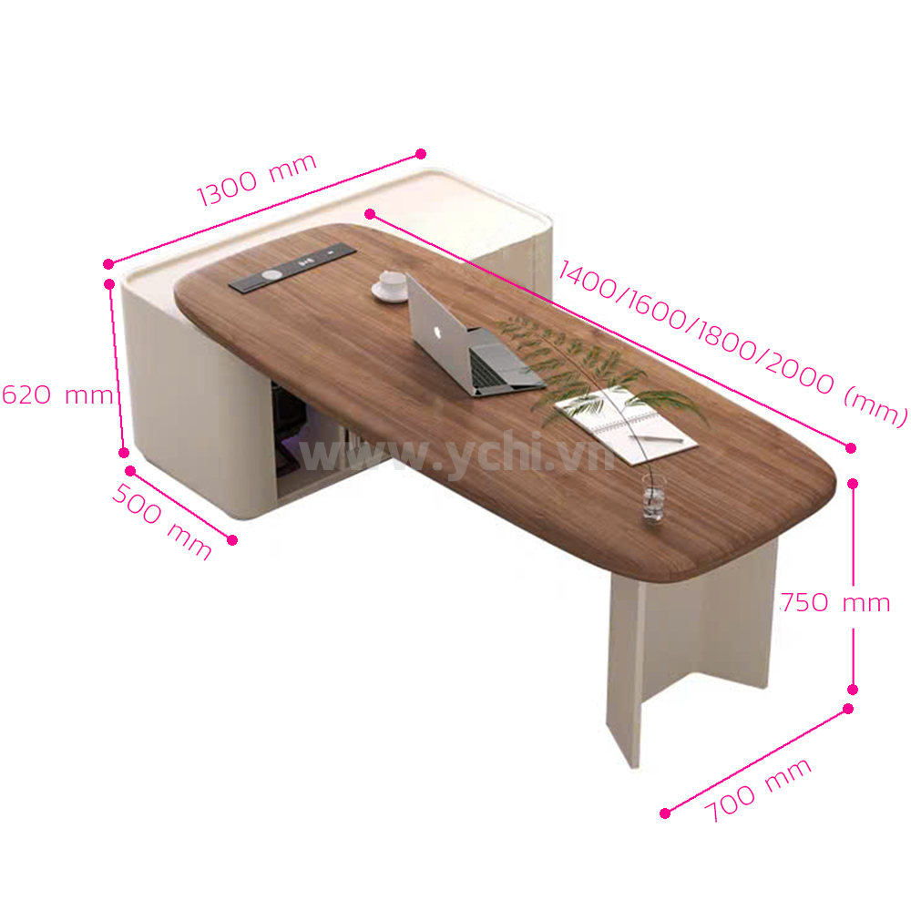 Bàn Lãnh Đạo YCHIMD147 có toàn bộ thân bàn được sản xuất từ gỗ công nghiệp MDF phủ Melamine, nên bàn vừa có kết cấu chắc chắn vừa có tính thẩm mỹ rất cao. Bàn lãnh đạo gỗ này là một siêu phẩm đang rất được ưa chuộng hiện nay tại nội thất YCHI. Bàn được thiết kế thông minh, kiểu dáng thanh lịch phù hợp với cả sếp nam và nữ. Sản phẩm có kiểu dáng hình chữ L, có tủ liền vô cùng tiện lợi. Bàn có kích thước tương đối lớn mang lại không gian làm việc rộng rãi, thoải mái cũng như tạo nên sự quyền lực cho người lãnh đạo.
