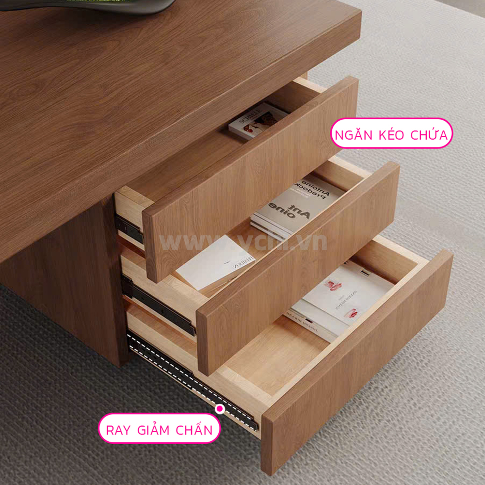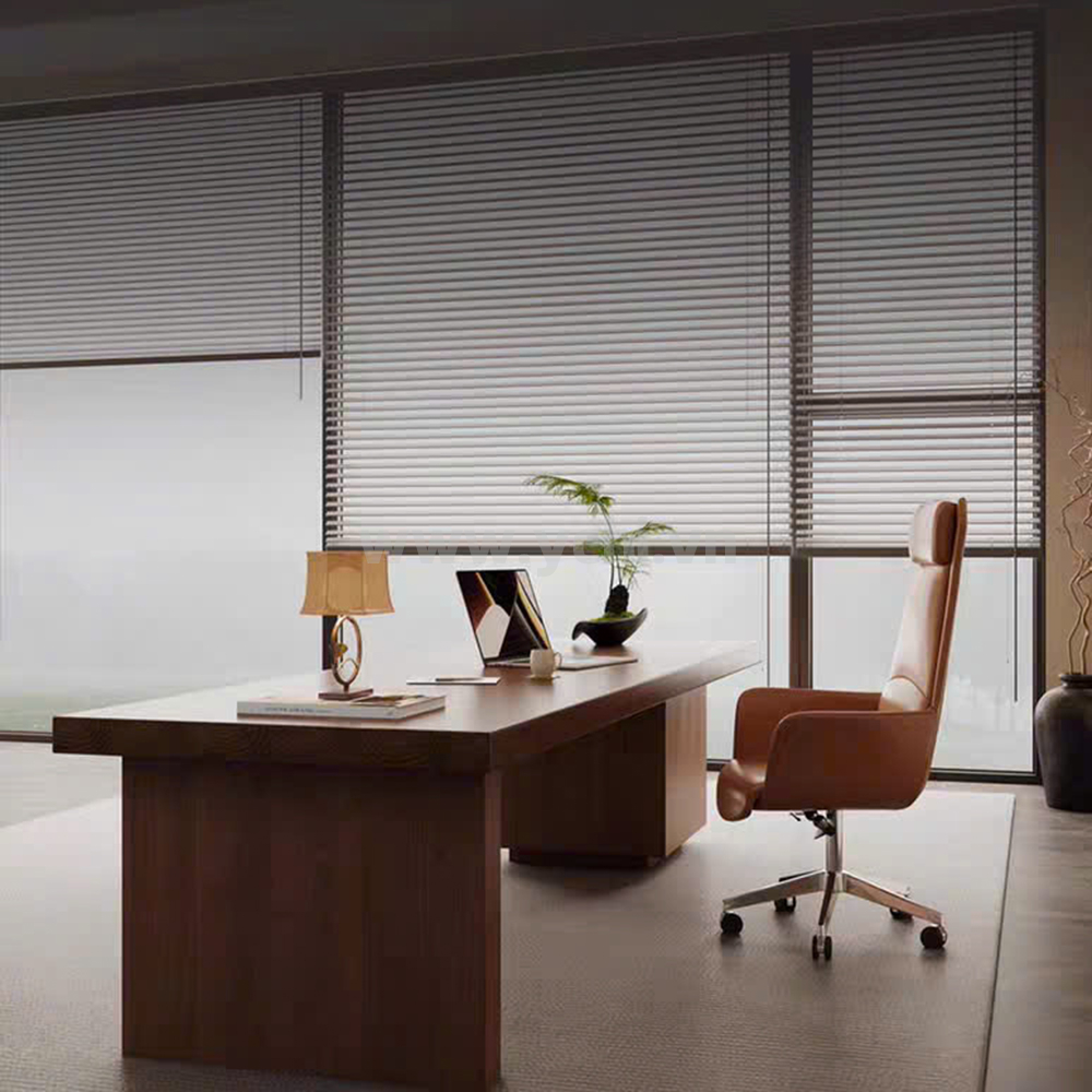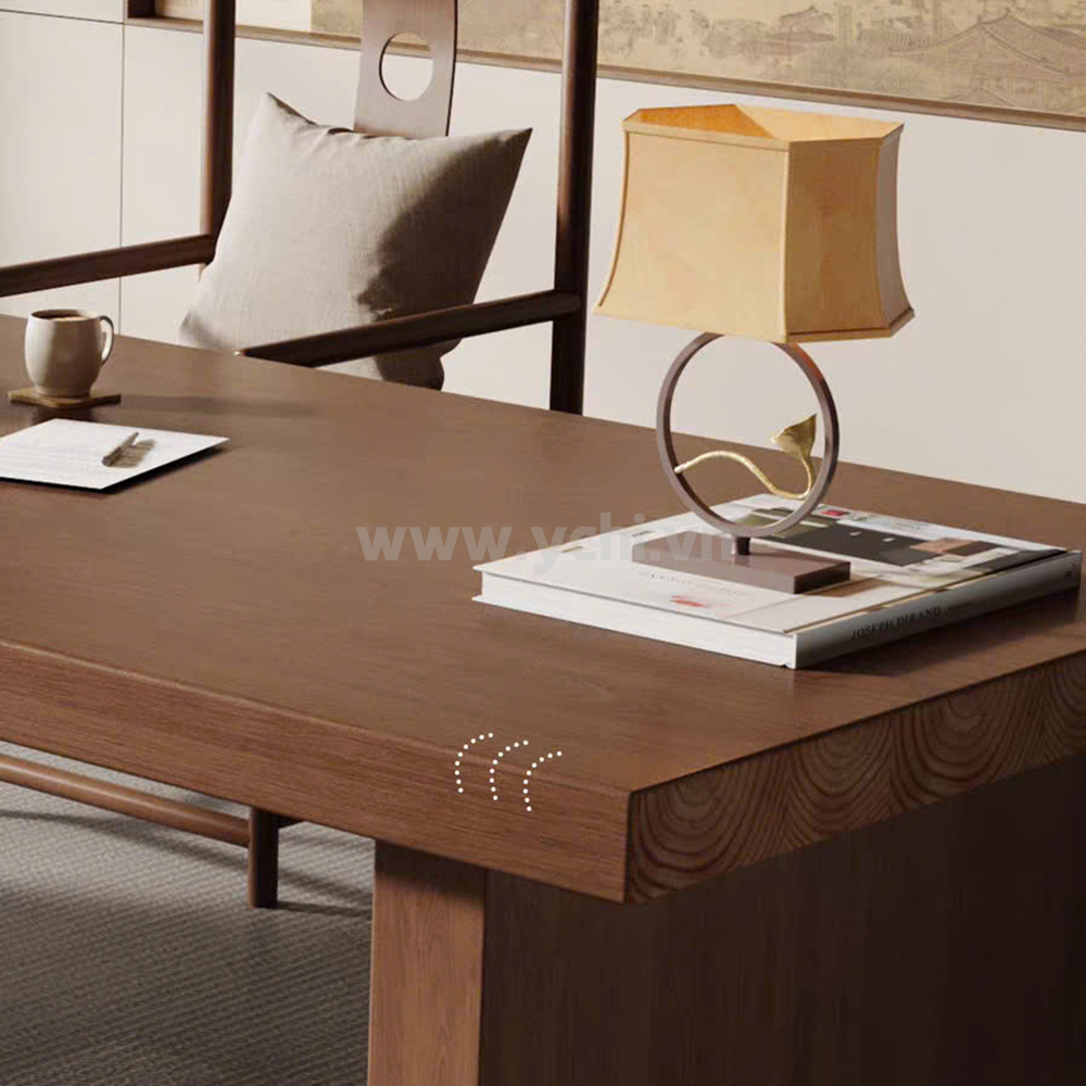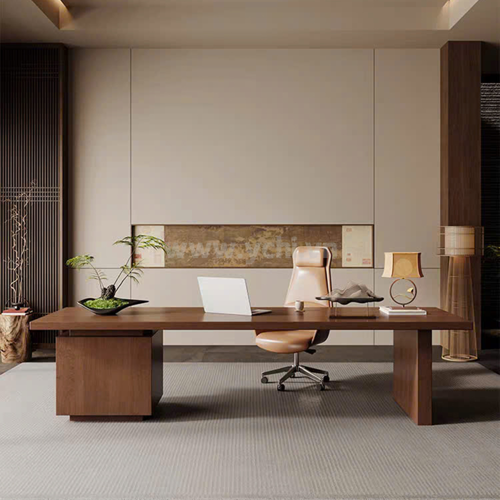 Tôn vinh phong cách làm việc hiện đại, Bàn Lãnh Đạo YCHIMD153 sở hữu đường nét tối giản, dứt khoát và mạnh mẽ. Chất liệu gỗ công nghiệp được xử lý kỹ lưỡng, mang lại bề mặt mịn màng, dễ dàng vệ sinh. Màu sắc trung tính, thường là vân gỗ óc chó hoặc màu đen/xám đậm, tạo cảm giác sang trọng và dễ dàng phối hợp với nội thất văn phòng khác. Chiếc bàn không chỉ là nơi ra quyết định mà còn là một điểm nhấn kiến trúc quan trọng, phản ánh gu thẩm mỹ tinh tế của người đứng đầu.