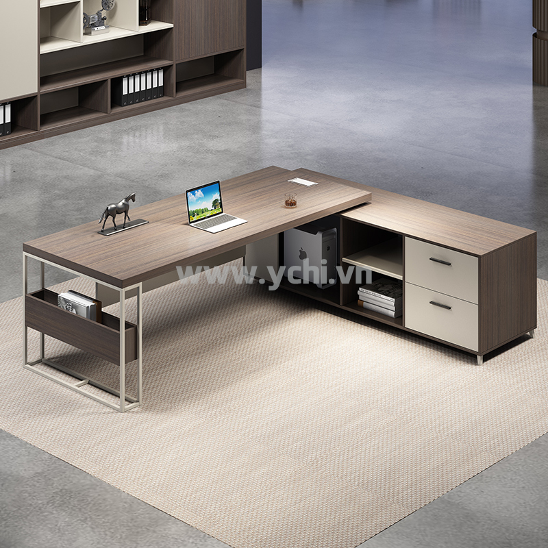 Bàn Quản Lý Không Gian Line Space II YCHILS212 có toàn bộ thân bàn được sản xuất từ gỗ công nghiệp MDF phủ Melamine, nên bàn vừa có kết cấu chắc chắn vừa có tính thẩm mỹ rất cao. Bàn lãnh đạo gỗ này là một siêu phẩm đang rất được ưa chuộng hiện nay tại nội thất YCHI. Bàn được thiết kế thông minh, kiểu dáng thanh lịch phù hợp với cả sếp nam và nữ. Sản phẩm có kiểu dáng hình chữ nhật, có tủ liền vô cùng tiện lợi. Bàn có kích thước tương đối lớn mang lại không gian làm việc rộng rãi, thoải mái cũng như tạo nên sự quyền lực cho người lãnh đạo.