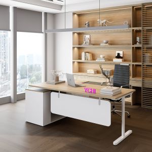 Bàn Quản Lý YCHIMD098 có toàn bộ thân bàn được sản xuất từ gỗ công nghiệp MDF phủ Melamine, nên bàn vừa có kết cấu chắc chắn vừa có tính thẩm mỹ rất cao. Bàn lãnh đạo gỗ này là một siêu phẩm đang rất được ưa chuộng hiện nay tại nội thất YCHI. Bàn được thiết kế thông minh, kiểu dáng thanh lịch phù hợp với cả sếp nam và nữ. Sản phẩm có kiểu dáng hình chữ L, có tủ liền vô cùng tiện lợi. Bàn có kích thước tương đối lớn mang lại không gian làm việc rộng rãi, thoải mái cũng như tạo nên sự quyền lực cho người lãnh đạo.
