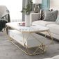 Bàn Sofa YCHIST001 sở hữu kiểu dáng hiện đại, khung thép xi mạ vàng hoặc đen toát lên vẻ sang trọng giúp nâng tầm giá trị thẩm mỹ cho không gian sử dụng. Bàn mặt đá sáng bóng mang lại không gian phòng khách hiện đại và sang trọng. Mặt bàn đá trắng hoặc đen chống trầy xước và có khả năng chịu lực tốt, 2 hộc kéo bằng gỗ tăng không gian lưu trữ đem lại sự gọn gàng ngăn nắp cho phòng khách của bạn.