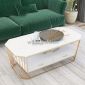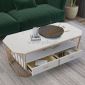 Bàn Sofa YCHIST002 sở hữu kiểu dáng hiện đại, khung thép xi mạ vàng hoặc đen toát lên vẻ sang trọng giúp nâng tầm giá trị thẩm mỹ cho không gian sử dụng. Bàn mặt đá sáng bóng mang lại không gian phòng khách hiện đại và sang trọng. Mặt bàn đá trắng hoặc đen chống trầy xước và có khả năng chịu lực tốt, 2 hộc kéo bằng gỗ tăng không gian lưu trữ đem lại sự gọn gàng ngăn nắp cho phòng khách của bạn.