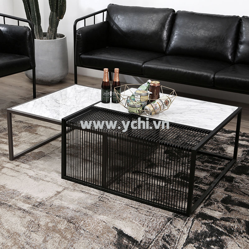 Bộ Bàn Sofa YCHIST010 có khung sắt đẹp hiện đại được kết hợp mới lạ giữa chất liệu khung sắt và mặt đá. Toàn bộ chân khung sắt được sơn tĩnh điện chống rỉ và có khả năng chịu lực cao, tạo giá đỡ cho toàn bộ mặt bàn bằng đá. Không gian phòng khách của bạn sẽ trở nên tuyệt vời và độc đáo với bộ bàn trà chân sắt theo phong cách hình hộp diêm.