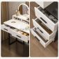 Bàn Trang Điểm YCHIDT010 có thiết kế với rất nhiều ngăn chứa đồ, sẵn sàng đáp ứng được nhu cầu về bài trí cũng như làm gọn không gian phòng ngủ của chị em phụ nữ, mang đến cho chị em một góc làm đẹp rộng rãi, đầy tiện nghi. Đặc biệt, 1 bên chân bàn được thay thế bằng tủ không gắn liền với thân bàn, tùy vào diện tích sử dụng, phần tủ có thể để 1 phần ra ngoài, tạo thêm mặt trang trí, hoặc có thể để trọn dưới mặt bàn, giúp tối ưu diện tích.