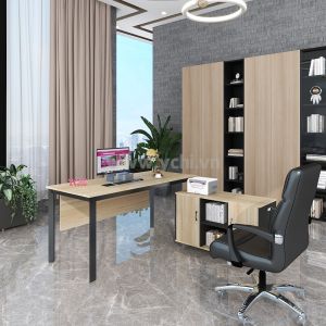 Mô tả: Đây là phiên bản nâng cấp của bàn chữ L, tích hợp một tủ phụ lớn đặt dưới mặt bàn hoặc gác lên chân bàn, tạo thành một khối liền mạch. Tủ phụ này thường bao gồm các ngăn kéo, hộc tủ có khóa để lưu trữ tài liệu mật, vật dụng cá nhân.