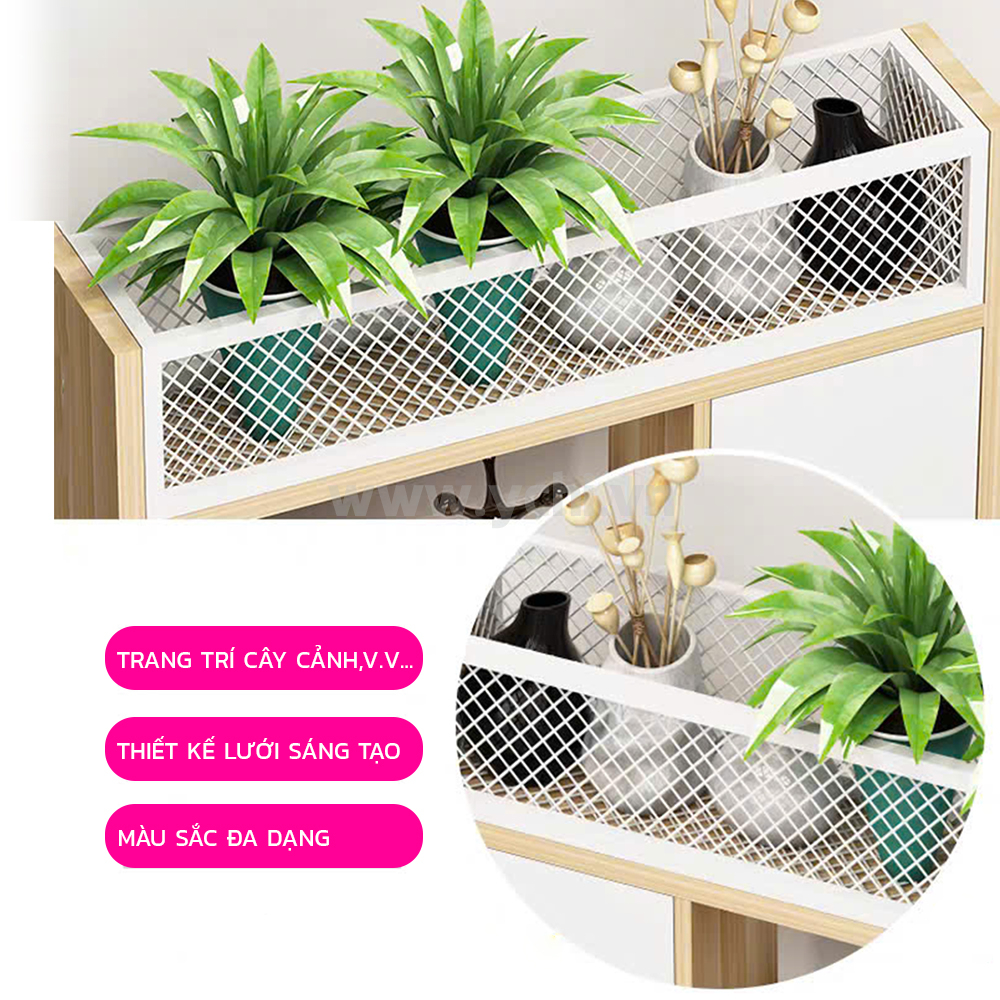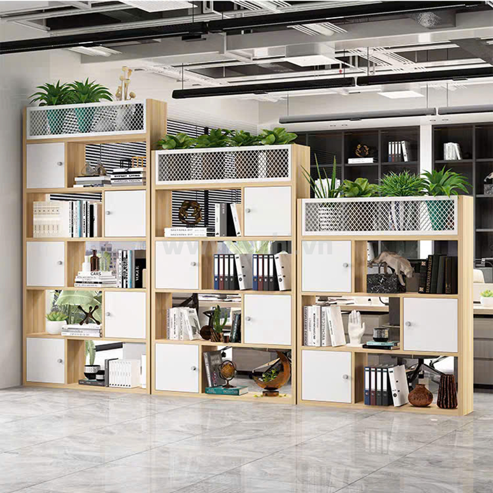 Biến hóa văn phòng trở thành một không gian nghệ thuật đầy sức sống với mẫu Bộ 3 Kệ Chậu Cây YCHICT011 – giải pháp đột phá kết hợp giữa lưu trữ thông minh và trang trí xanh hiện đại. Sản phẩm thu hút ánh nhìn nhờ thiết kế đối xứng hoàn hảo, sử dụng tông màu gỗ sồi vàng ấm áp đan xen với các điểm nhấn trắng tinh khôi, giúp tạo dựng một môi trường làm việc cởi mở và tràn đầy năng lượng. Điểm sáng tạo độc đáo nằm ở cấu trúc tầng bậc: phía trên cùng là bồn cây xanh tích hợp sẵn lưới sắt trang trí, đóng vai trò như một bức vách ngăn "biết thở" giúp thanh lọc không khí và giảm bức xạ máy tính. Thân tủ được phân bổ khoa học với hệ kệ mở ở giữa để trưng bày các vật phẩm decor cá tính, kết hợp cùng ngăn tủ cánh mở phía dưới có tay nắm thanh mảnh, giúp tối ưu diện tích sắp xếp hồ sơ luôn ngăn nắp và kín đáo. Với YCHICT011, bạn không chỉ sở hữu một món đồ nội thất bền bỉ mà còn đang kiến tạo một hệ sinh thái làm việc tích cực, góp phần nâng tầm chuyên nghiệp và khẳng định phong cách bền vững cho doanh nghiệp.