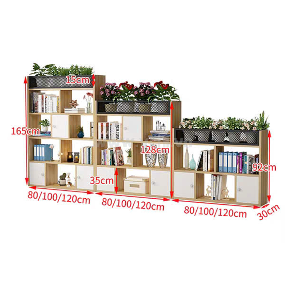 Kích thước: 1 kệ 1000x300x920 (mm), 1 kệ 1000x300x1280 (mm), 1 kệ 1000x300x1650 (mm) (*Kích thước có thể thay đổi theo yêu cầu).