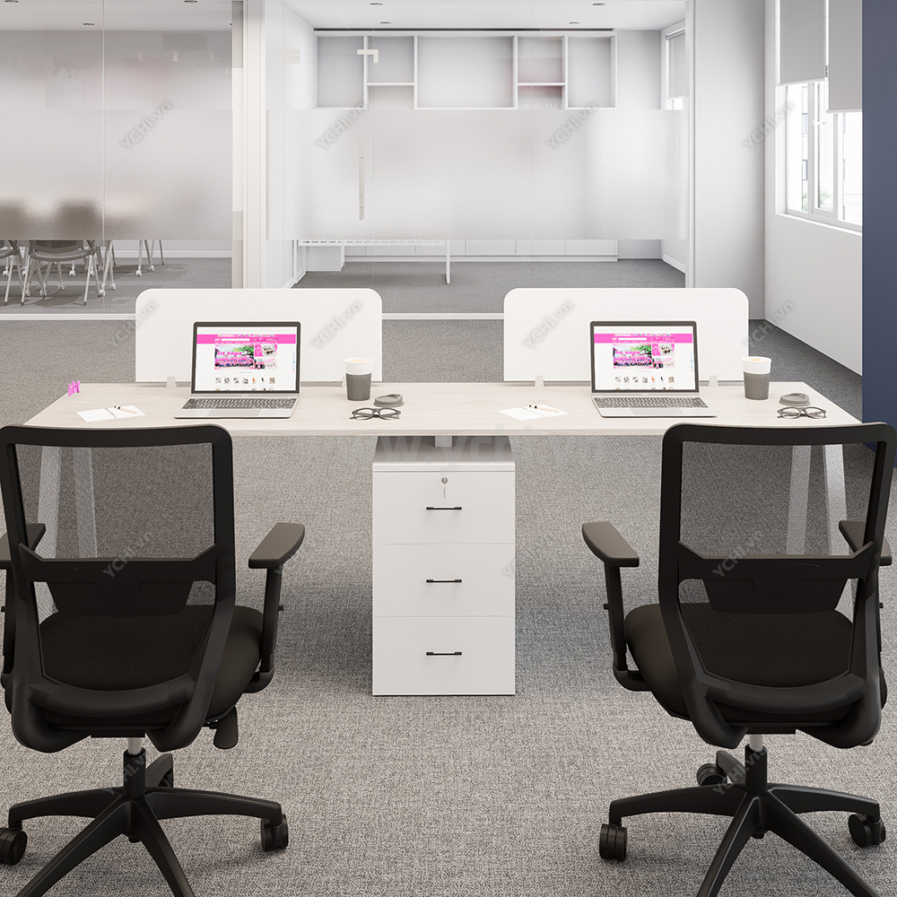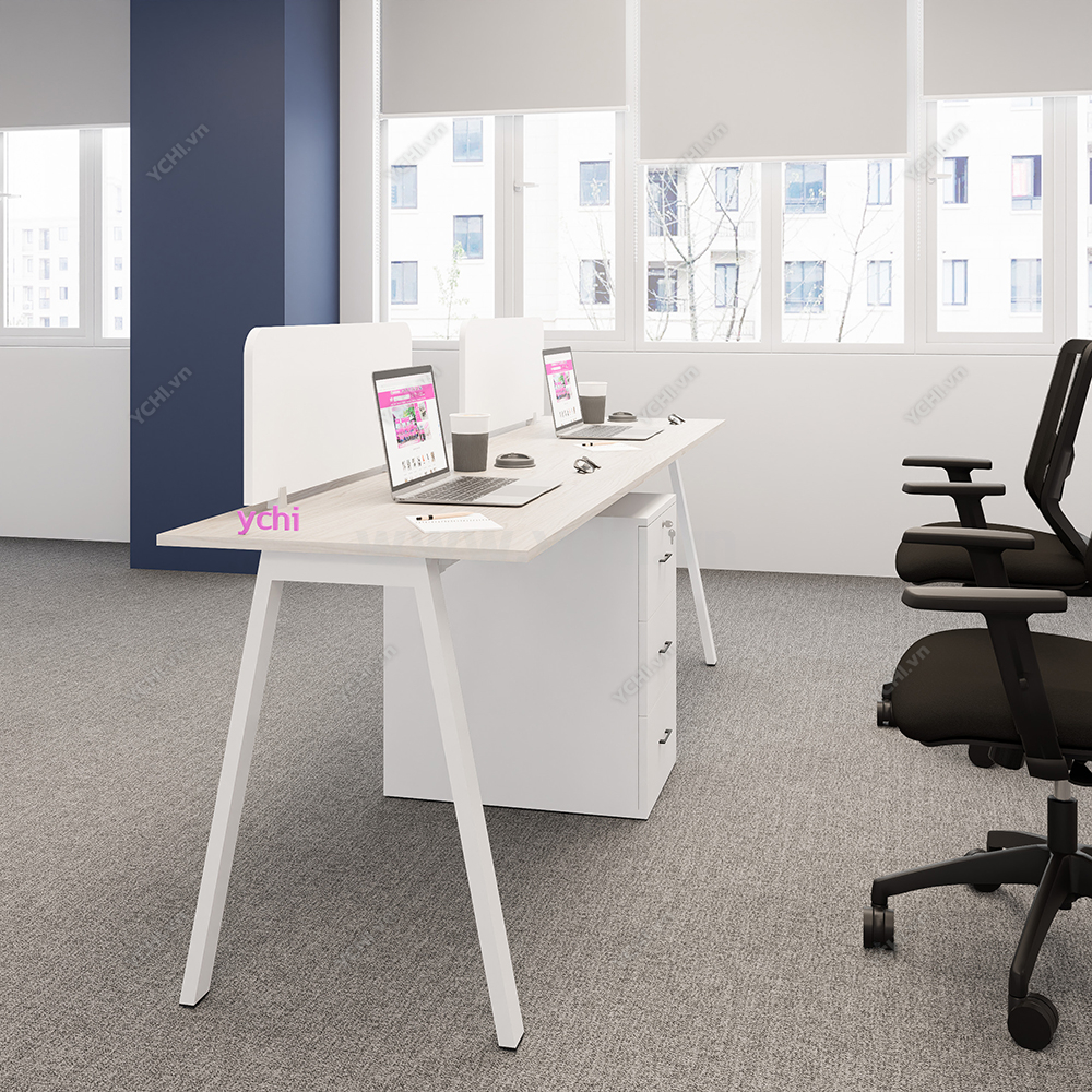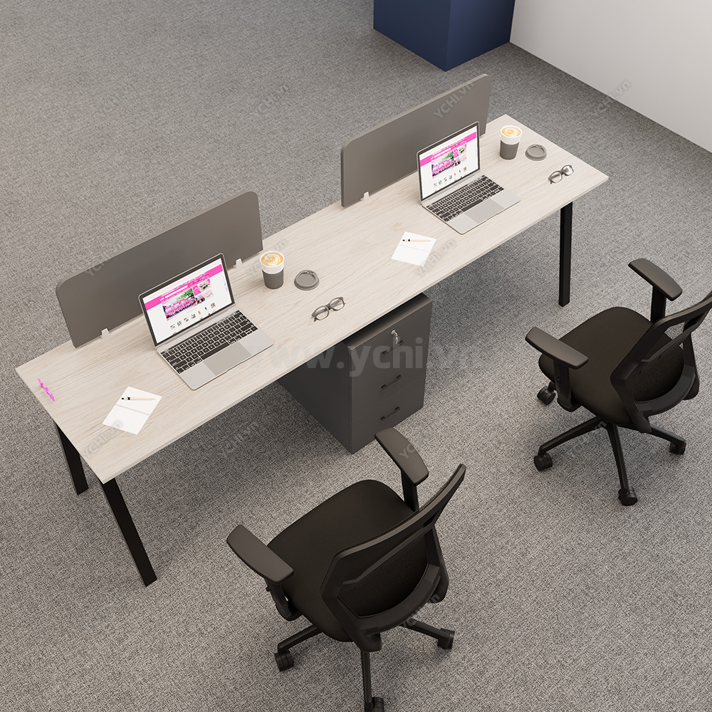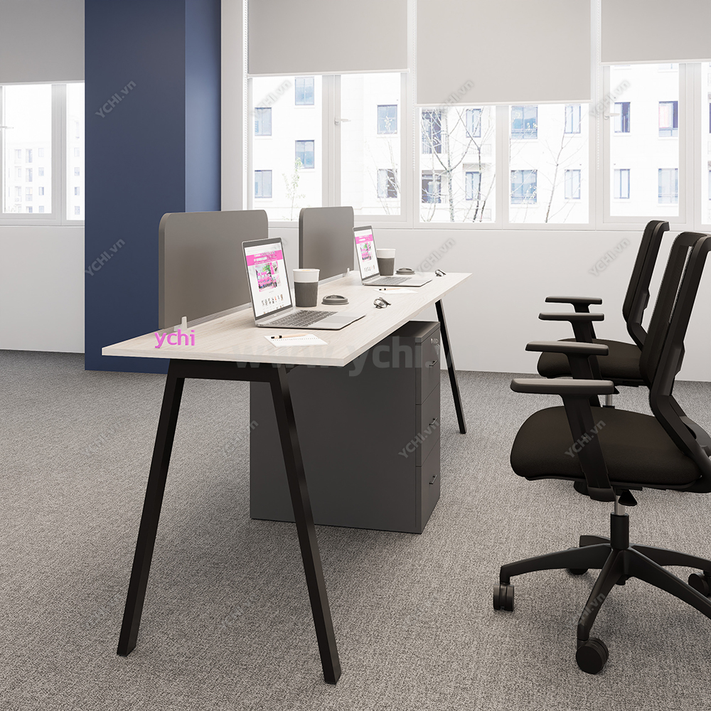 Khác biệt hoàn toàn với các dòng bàn đơn truyền thống, Cụm Bàn Làm Việc 2 Người Không Gian Atom Space YCHIAS016 sở hữu ngôn ngữ thiết kế trải dài liền mạch, sử dụng mặt gỗ công nghiệp cao cấp với gam màu sáng tinh khôi, tạo cảm giác nới rộng diện tích tối đa. Điểm nhấn ấn tượng nằm ở sự đối xứng hoàn hảo, nơi mỗi vị trí ngồi đều được trang bị một hệ tủ hộc kéo 3 ngăn vững chãi đóng vai trò như chân trụ trung tâm, vừa đảm bảo khả năng chịu lực tuyệt vời, vừa mang lại không gian lưu trữ cá nhân cực kỳ tiện lợi. Sự kết hợp giữa khung chân sắt chữ A sơn tĩnh điện màu đen quyền lực và vách ngăn xám tối tối giản không chỉ tạo ra ranh giới riêng tư cần thiết để tăng cường sự tập trung, mà còn kiến tạo nên một tổng thể kiến trúc văn phòng vô cùng đẳng cấp và đồng bộ. Đây chính là sự lựa chọn chiến lược để thúc đẩy tinh thần kết nối đồng nghiệp trong khi vẫn giữ vững hiệu suất làm việc độc lập, phù hợp hoàn hảo cho các startup và doanh nghiệp hướng tới phong cách hiện đại, tinh gọn.