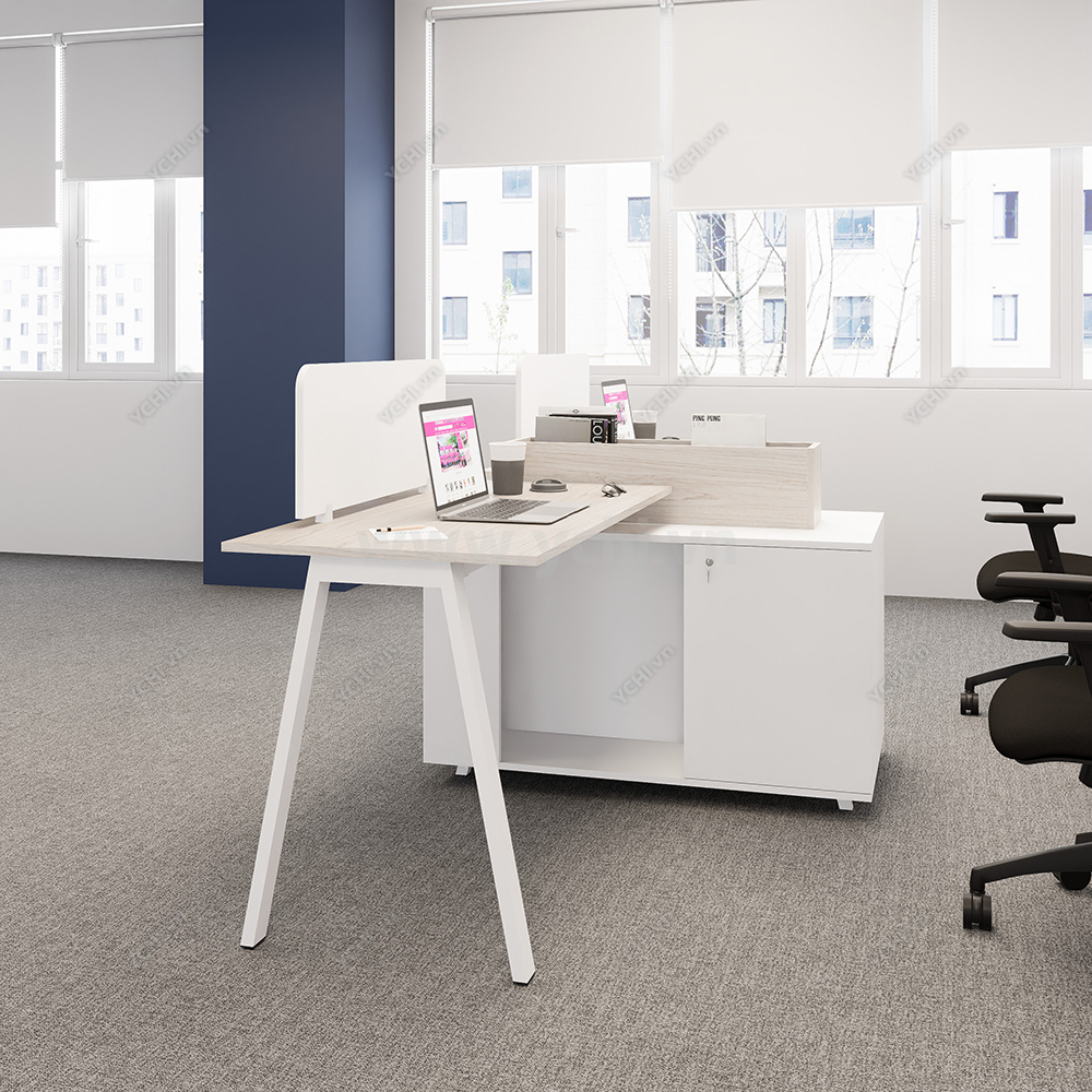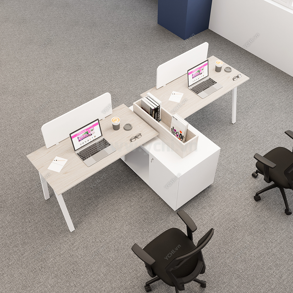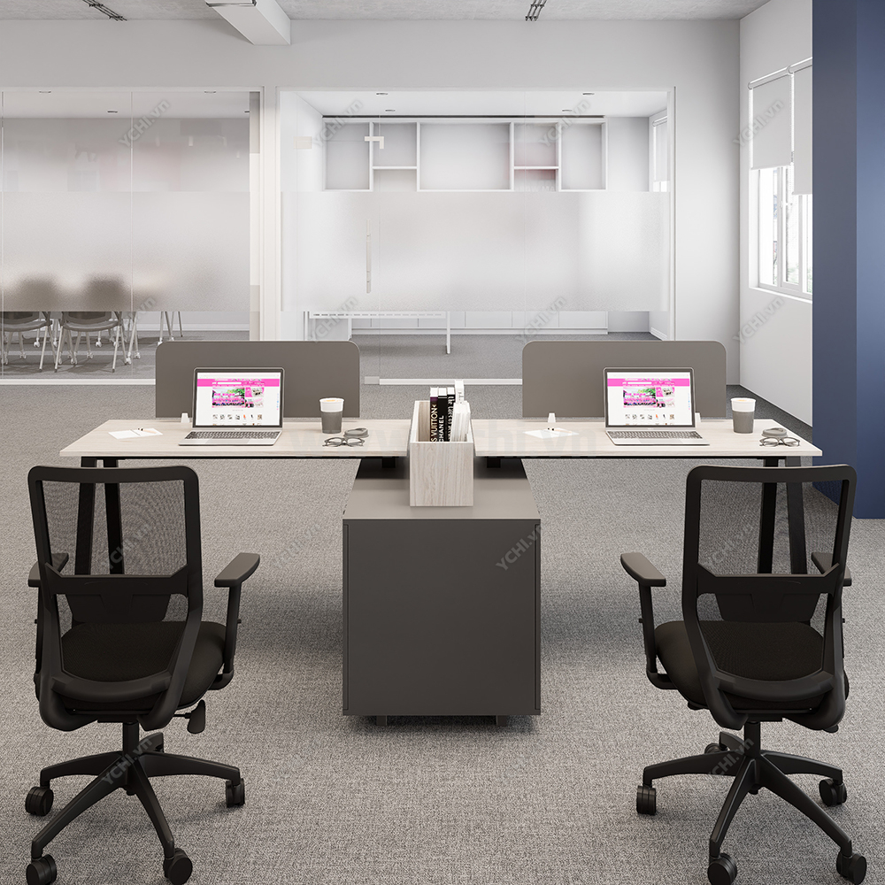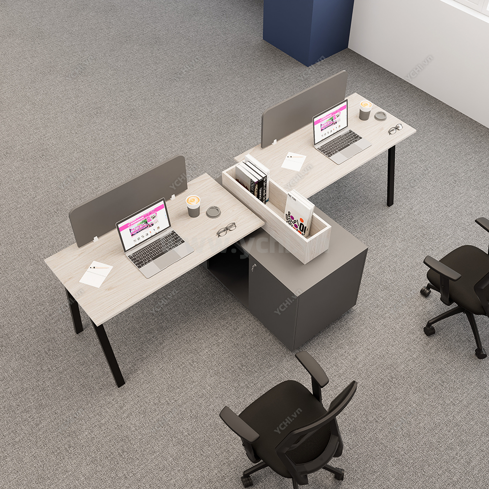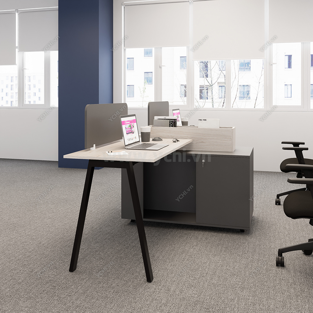 Khác biệt hoàn toàn với các dòng bàn đơn truyền thống, Cụm Bàn Làm Việc 2 Người Không Gian Atom Space YCHIAS017 sở hữu ngôn ngữ thiết kế trải dài liền mạch, sử dụng mặt gỗ công nghiệp cao cấp với gam màu sáng tinh khôi, tạo cảm giác nới rộng diện tích tối đa. Điểm nhấn ấn tượng nằm ở sự đối xứng hoàn hảo, nơi mỗi vị trí ngồi đều được trang bị một hệ tủ hộc kéo 3 ngăn vững chãi đóng vai trò như chân trụ trung tâm, vừa đảm bảo khả năng chịu lực tuyệt vời, vừa mang lại không gian lưu trữ cá nhân cực kỳ tiện lợi. Sự kết hợp giữa khung chân sắt chữ A sơn tĩnh điện màu đen quyền lực và vách ngăn xám tối tối giản không chỉ tạo ra ranh giới riêng tư cần thiết để tăng cường sự tập trung, mà còn kiến tạo nên một tổng thể kiến trúc văn phòng vô cùng đẳng cấp và đồng bộ. Đây chính là sự lựa chọn chiến lược để thúc đẩy tinh thần kết nối đồng nghiệp trong khi vẫn giữ vững hiệu suất làm việc độc lập, phù hợp hoàn hảo cho các startup và doanh nghiệp hướng tới phong cách hiện đại, tinh gọn.