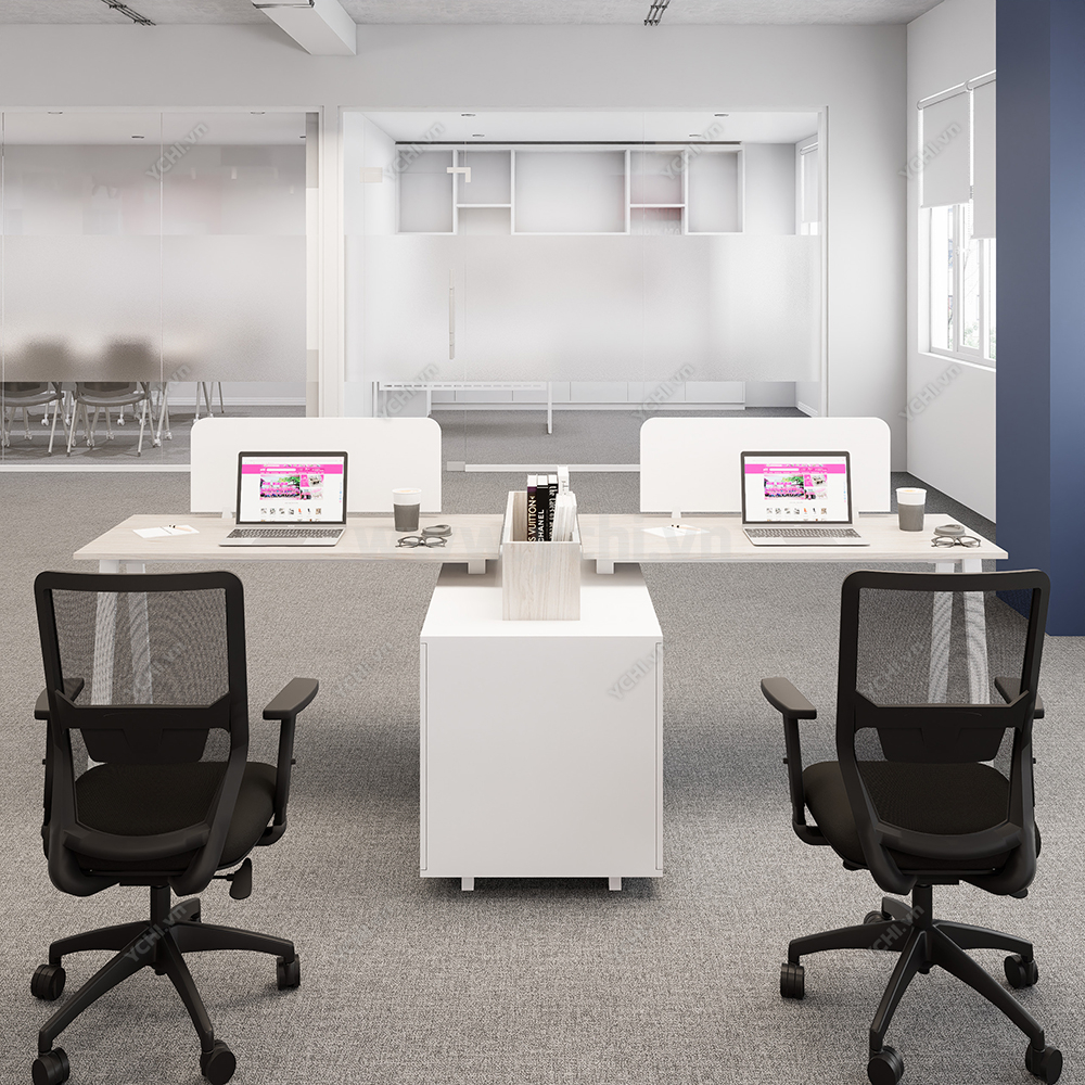 Cụm Bàn Làm Việc 2 Người Không Gian Atom Space YCHIAS017 mang phong cách hiện đại, thiết kế cổ điển, vuông vức, làm cho không gian văn phòng trở nên sang trọng, lịch lãm, đẳng cấp. Đặc biệt, thiết kế mang đến sự hoàn hảo trong không gian sử dụng, có thể kết hợp với tủ di động để tối ưu không gian lưu trữ.