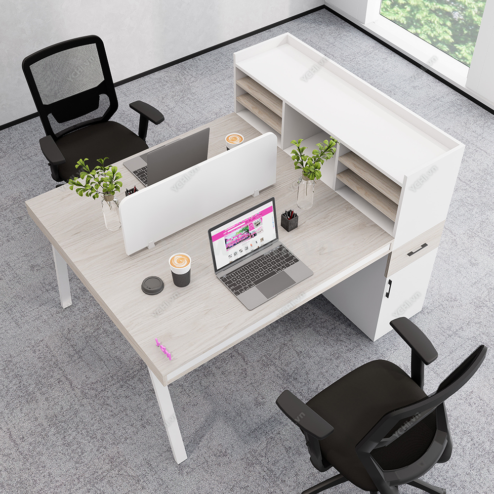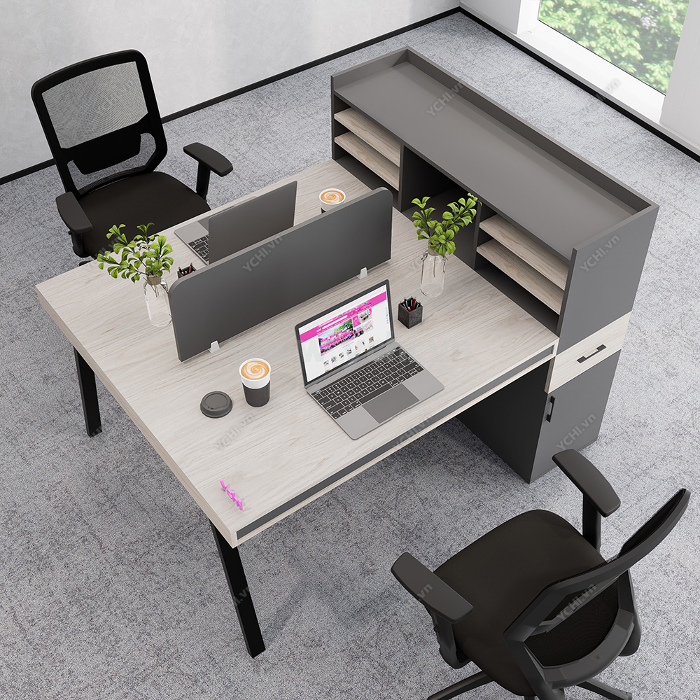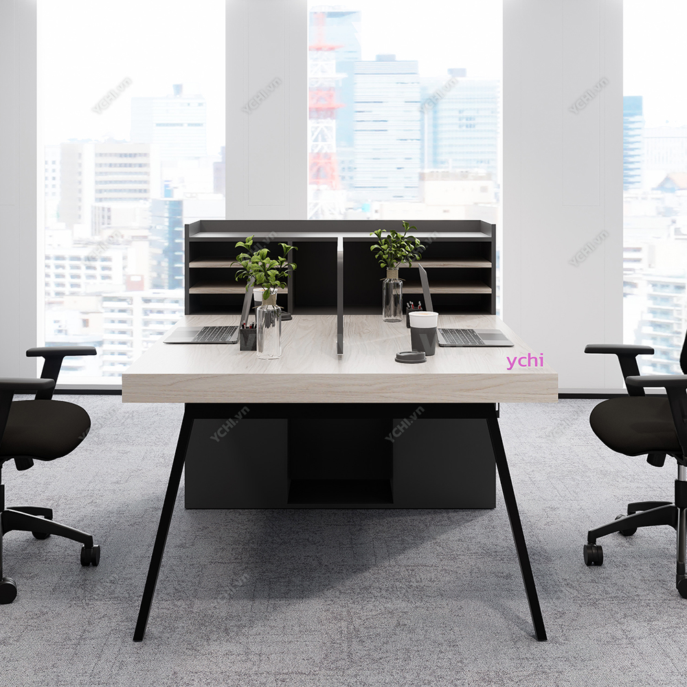 Khác biệt hoàn toàn với các dòng bàn đơn truyền thống, Cụm Bàn Làm Việc 2 Người Không Gian Atom Space YCHIAS019 sở hữu ngôn ngữ thiết kế trải dài liền mạch, sử dụng mặt gỗ công nghiệp cao cấp với gam màu sáng tinh khôi, tạo cảm giác nới rộng diện tích tối đa. Điểm nhấn ấn tượng nằm ở sự đối xứng hoàn hảo, nơi mỗi vị trí ngồi đều được trang bị một hệ tủ hộc kéo 3 ngăn vững chãi đóng vai trò như chân trụ trung tâm, vừa đảm bảo khả năng chịu lực tuyệt vời, vừa mang lại không gian lưu trữ cá nhân cực kỳ tiện lợi. Sự kết hợp giữa khung chân sắt chữ A sơn tĩnh điện màu đen quyền lực và vách ngăn xám tối tối giản không chỉ tạo ra ranh giới riêng tư cần thiết để tăng cường sự tập trung, mà còn kiến tạo nên một tổng thể kiến trúc văn phòng vô cùng đẳng cấp và đồng bộ. Đây chính là sự lựa chọn chiến lược để thúc đẩy tinh thần kết nối đồng nghiệp trong khi vẫn giữ vững hiệu suất làm việc độc lập, phù hợp hoàn hảo cho các startup và doanh nghiệp hướng tới phong cách hiện đại, tinh gọn.