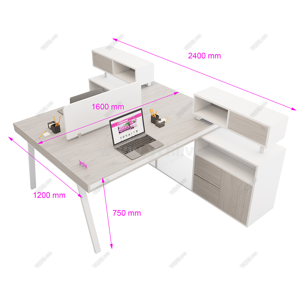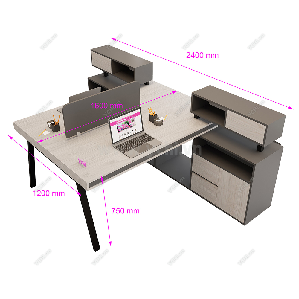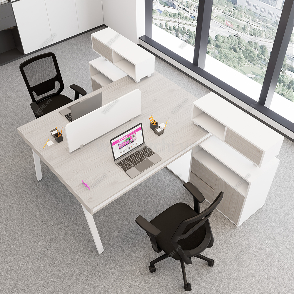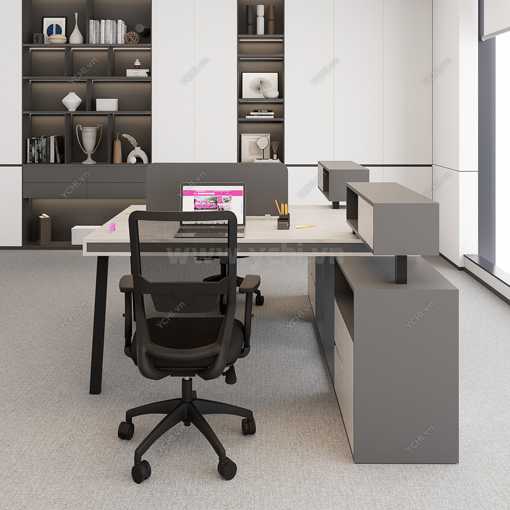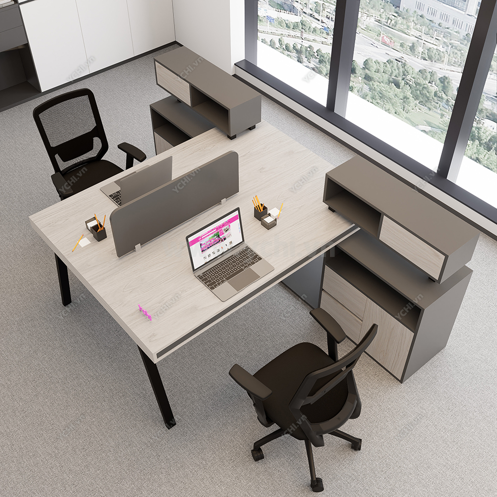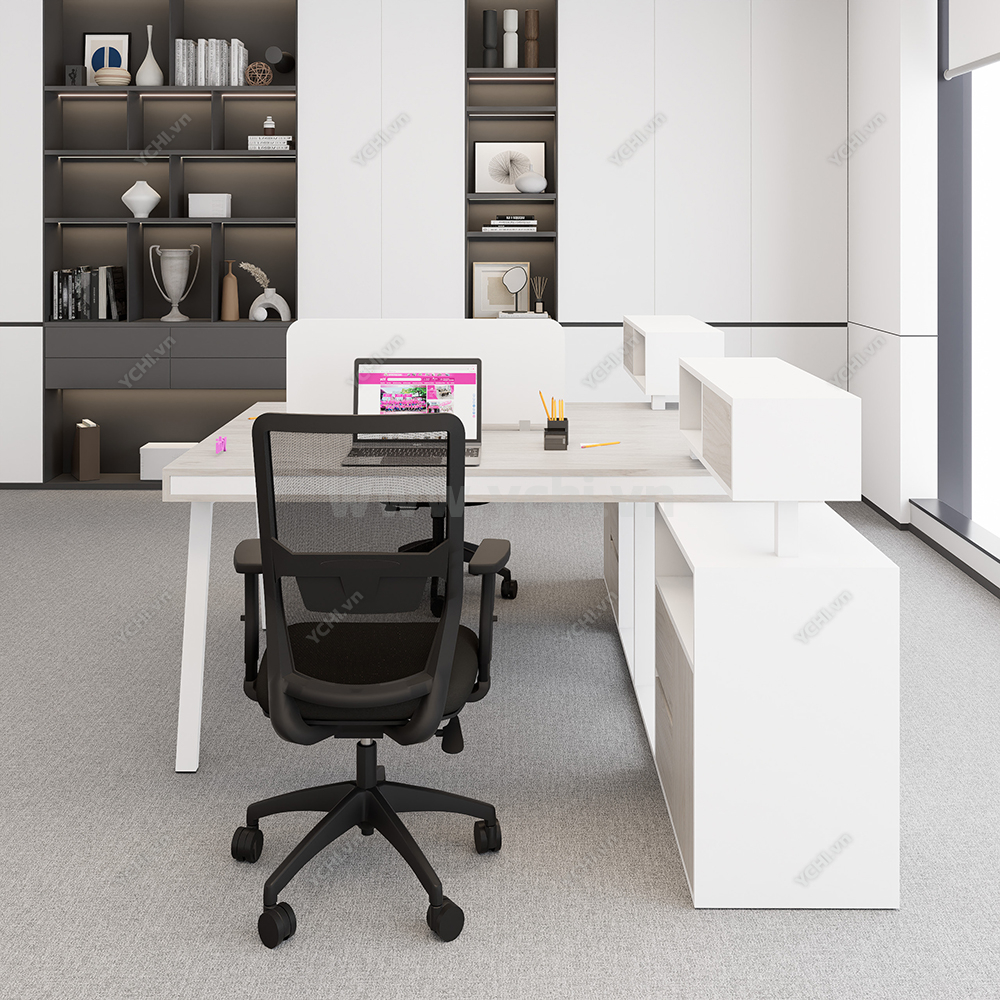 Cụm Bàn Làm Việc 2 Người Không Gian Atom Space YCHIAS020 mang phong cách hiện đại, thiết kế cổ điển, vuông vức, làm cho không gian văn phòng trở nên sang trọng, lịch lãm, đẳng cấp. Đặc biệt, thiết kế mang đến sự hoàn hảo trong không gian sử dụng, có thể kết hợp với tủ di động để tối ưu không gian lưu trữ.