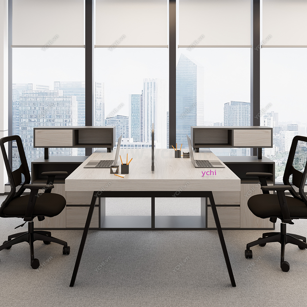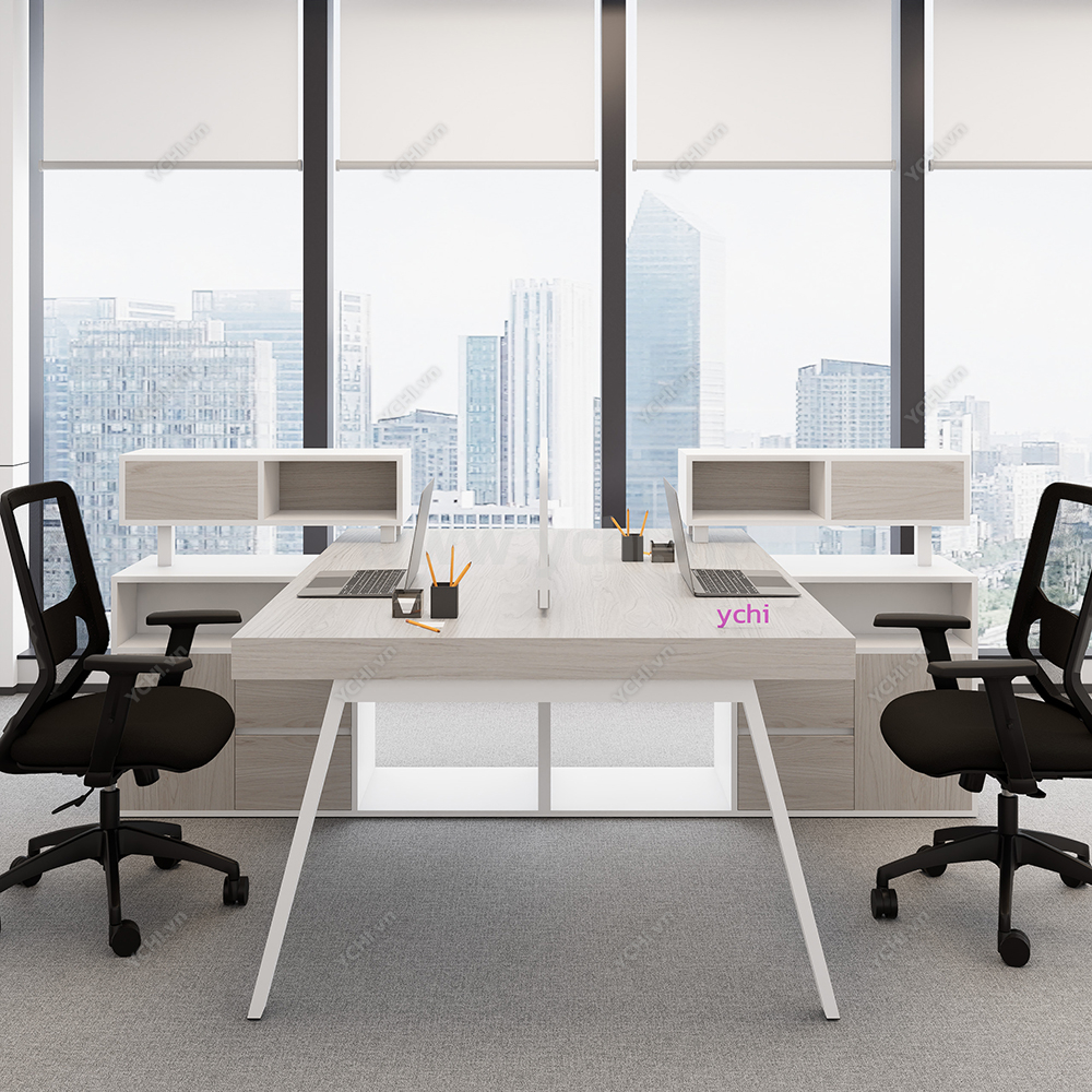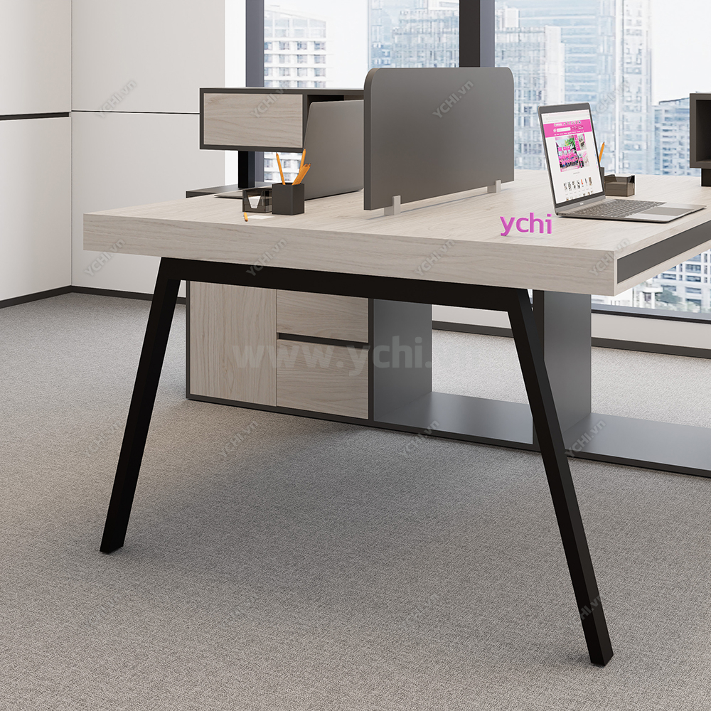 Khác biệt hoàn toàn với các dòng bàn đơn truyền thống, Cụm Bàn Làm Việc 2 Người Không Gian Atom Space YCHIAS020 sở hữu ngôn ngữ thiết kế trải dài liền mạch, sử dụng mặt gỗ công nghiệp cao cấp với gam màu sáng tinh khôi, tạo cảm giác nới rộng diện tích tối đa. Điểm nhấn ấn tượng nằm ở sự đối xứng hoàn hảo, nơi mỗi vị trí ngồi đều được trang bị một hệ tủ hộc kéo 3 ngăn vững chãi đóng vai trò như chân trụ trung tâm, vừa đảm bảo khả năng chịu lực tuyệt vời, vừa mang lại không gian lưu trữ cá nhân cực kỳ tiện lợi. Sự kết hợp giữa khung chân sắt chữ A sơn tĩnh điện màu đen quyền lực và vách ngăn xám tối tối giản không chỉ tạo ra ranh giới riêng tư cần thiết để tăng cường sự tập trung, mà còn kiến tạo nên một tổng thể kiến trúc văn phòng vô cùng đẳng cấp và đồng bộ. Đây chính là sự lựa chọn chiến lược để thúc đẩy tinh thần kết nối đồng nghiệp trong khi vẫn giữ vững hiệu suất làm việc độc lập, phù hợp hoàn hảo cho các startup và doanh nghiệp hướng tới phong cách hiện đại, tinh gọn.