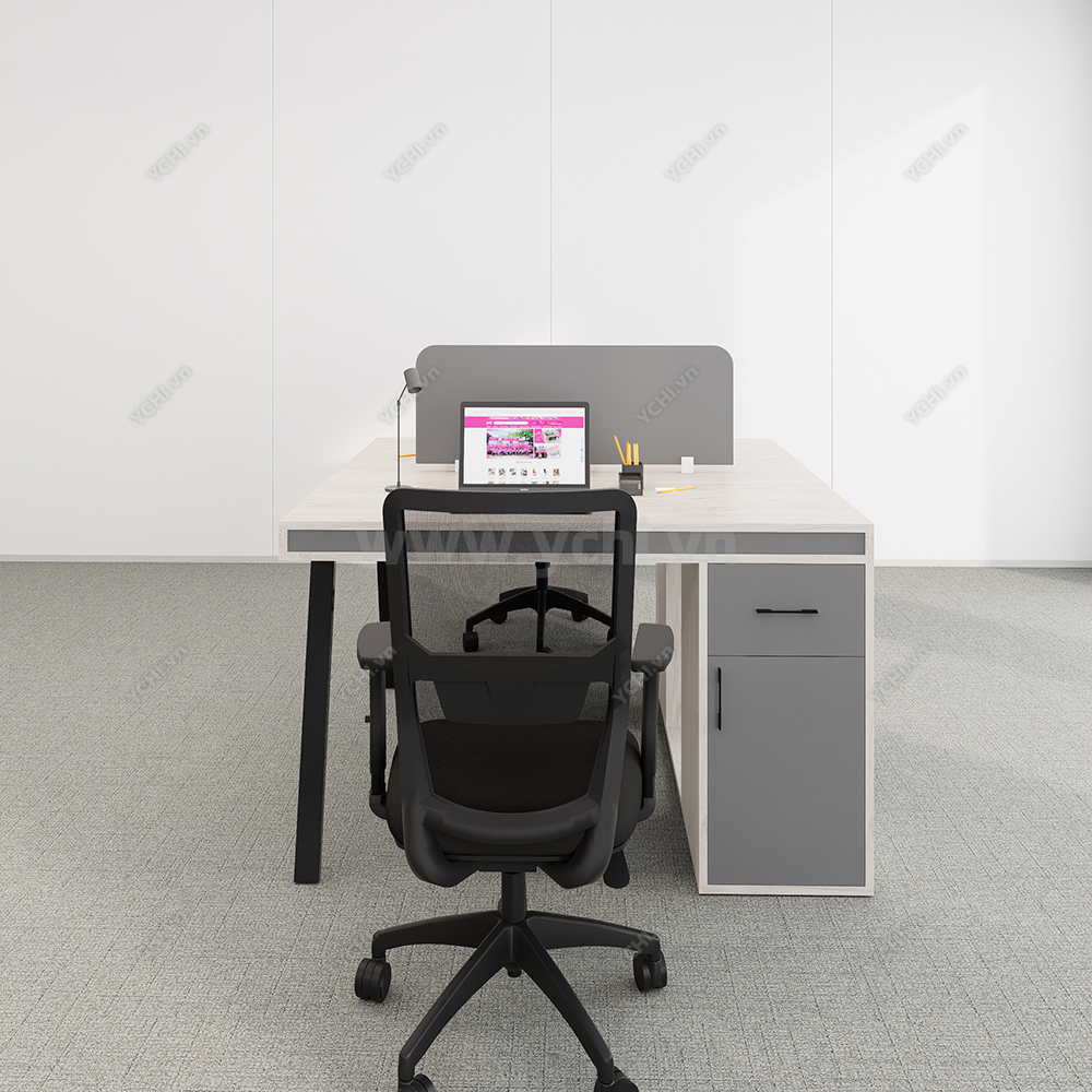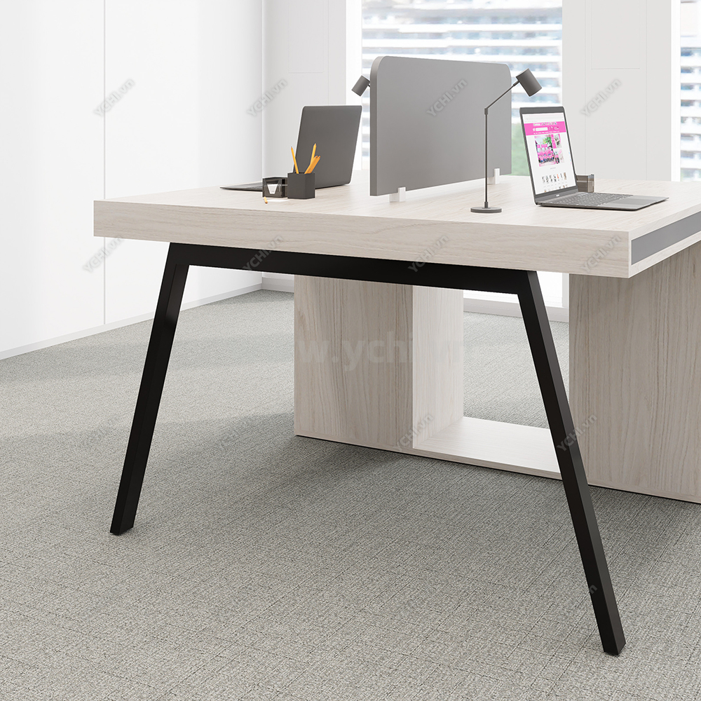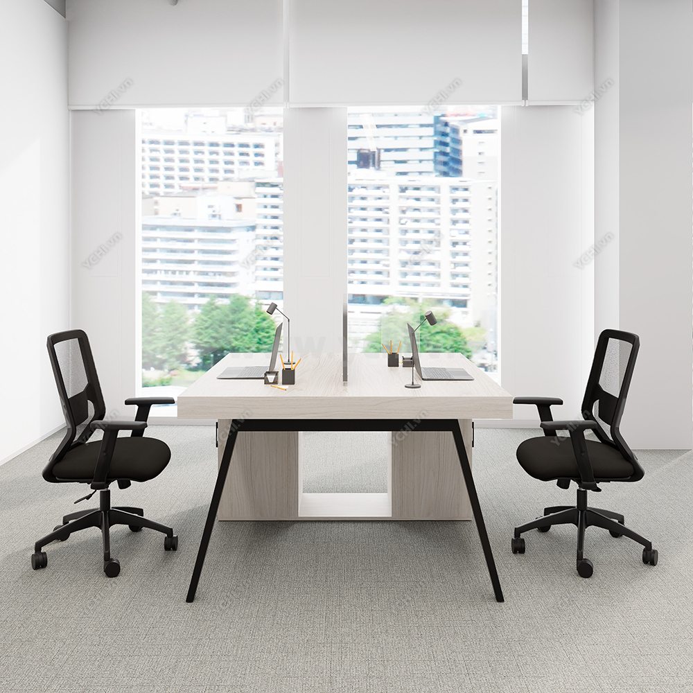 Khác biệt hoàn toàn với các dòng bàn đơn truyền thống, Cụm Bàn Làm Việc 2 Người Không Gian Atom Space YCHIAS023 sở hữu ngôn ngữ thiết kế trải dài liền mạch, sử dụng mặt gỗ công nghiệp cao cấp với gam màu sáng tinh khôi, tạo cảm giác nới rộng diện tích tối đa. Điểm nhấn ấn tượng nằm ở sự đối xứng hoàn hảo, nơi mỗi vị trí ngồi đều được trang bị một hệ tủ hộc kéo 3 ngăn vững chãi đóng vai trò như chân trụ trung tâm, vừa đảm bảo khả năng chịu lực tuyệt vời, vừa mang lại không gian lưu trữ cá nhân cực kỳ tiện lợi. Sự kết hợp giữa khung chân sắt chữ A sơn tĩnh điện màu đen quyền lực và vách ngăn xám tối tối giản không chỉ tạo ra ranh giới riêng tư cần thiết để tăng cường sự tập trung, mà còn kiến tạo nên một tổng thể kiến trúc văn phòng vô cùng đẳng cấp và đồng bộ. Đây chính là sự lựa chọn chiến lược để thúc đẩy tinh thần kết nối đồng nghiệp trong khi vẫn giữ vững hiệu suất làm việc độc lập, phù hợp hoàn hảo cho các startup và doanh nghiệp hướng tới phong cách hiện đại, tinh gọn.