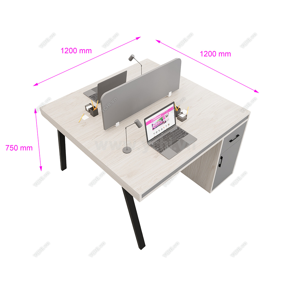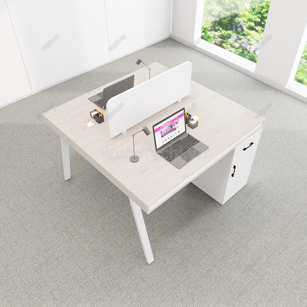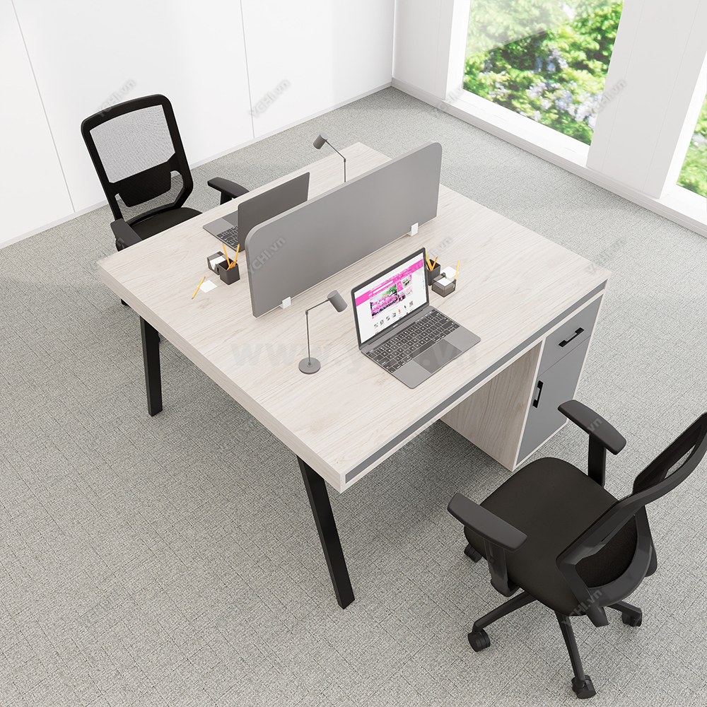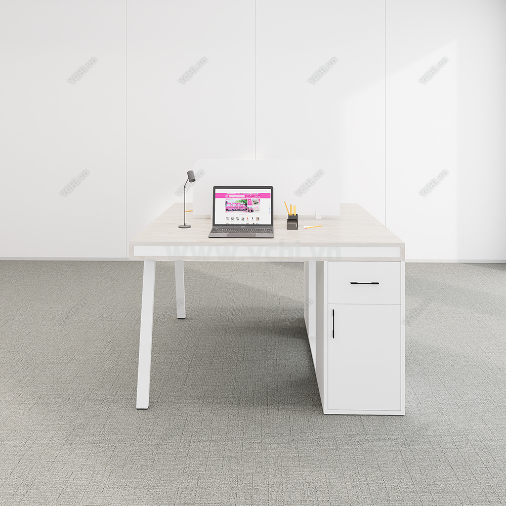Khác biệt hoàn toàn với các dòng bàn đơn truyền thống, Cụm Bàn Làm Việc 2 Người Không Gian Atom Space YCHIAS023 sở hữu ngôn ngữ thiết kế trải dài liền mạch, sử dụng mặt gỗ công nghiệp cao cấp với gam màu sáng tinh khôi, tạo cảm giác nới rộng diện tích tối đa. Điểm nhấn ấn tượng nằm ở sự đối xứng hoàn hảo, nơi mỗi vị trí ngồi đều được trang bị một hệ tủ hộc kéo 3 ngăn vững chãi đóng vai trò như chân trụ trung tâm, vừa đảm bảo khả năng chịu lực tuyệt vời, vừa mang lại không gian lưu trữ cá nhân cực kỳ tiện lợi. Sự kết hợp giữa khung chân sắt chữ A sơn tĩnh điện màu đen quyền lực và vách ngăn xám tối tối giản không chỉ tạo ra ranh giới riêng tư cần thiết để tăng cường sự tập trung, mà còn kiến tạo nên một tổng thể kiến trúc văn phòng vô cùng đẳng cấp và đồng bộ. Đây chính là sự lựa chọn chiến lược để thúc đẩy tinh thần kết nối đồng nghiệp trong khi vẫn giữ vững hiệu suất làm việc độc lập, phù hợp hoàn hảo cho các startup và doanh nghiệp hướng tới phong cách hiện đại, tinh gọn.