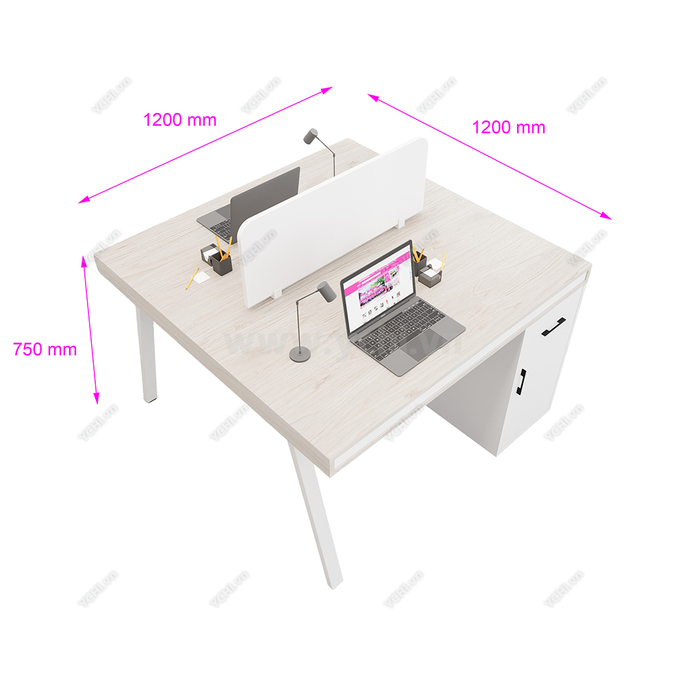 - Mặt bàn: MDF phủ melamine.