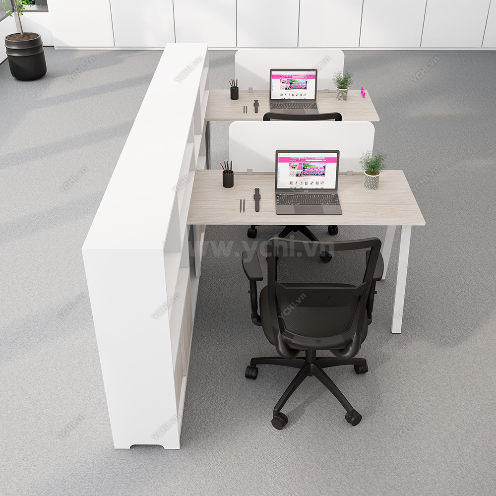 Cụm Bàn Làm Việc 2 Người Không Gian Atom Space YCHIAS025 mang phong cách hiện đại, thiết kế cổ điển, vuông vức, làm cho không gian văn phòng trở nên sang trọng, lịch lãm, đẳng cấp. Đặc biệt, thiết kế mang đến sự hoàn hảo trong không gian sử dụng, có thể kết hợp với tủ di động để tối ưu không gian lưu trữ.