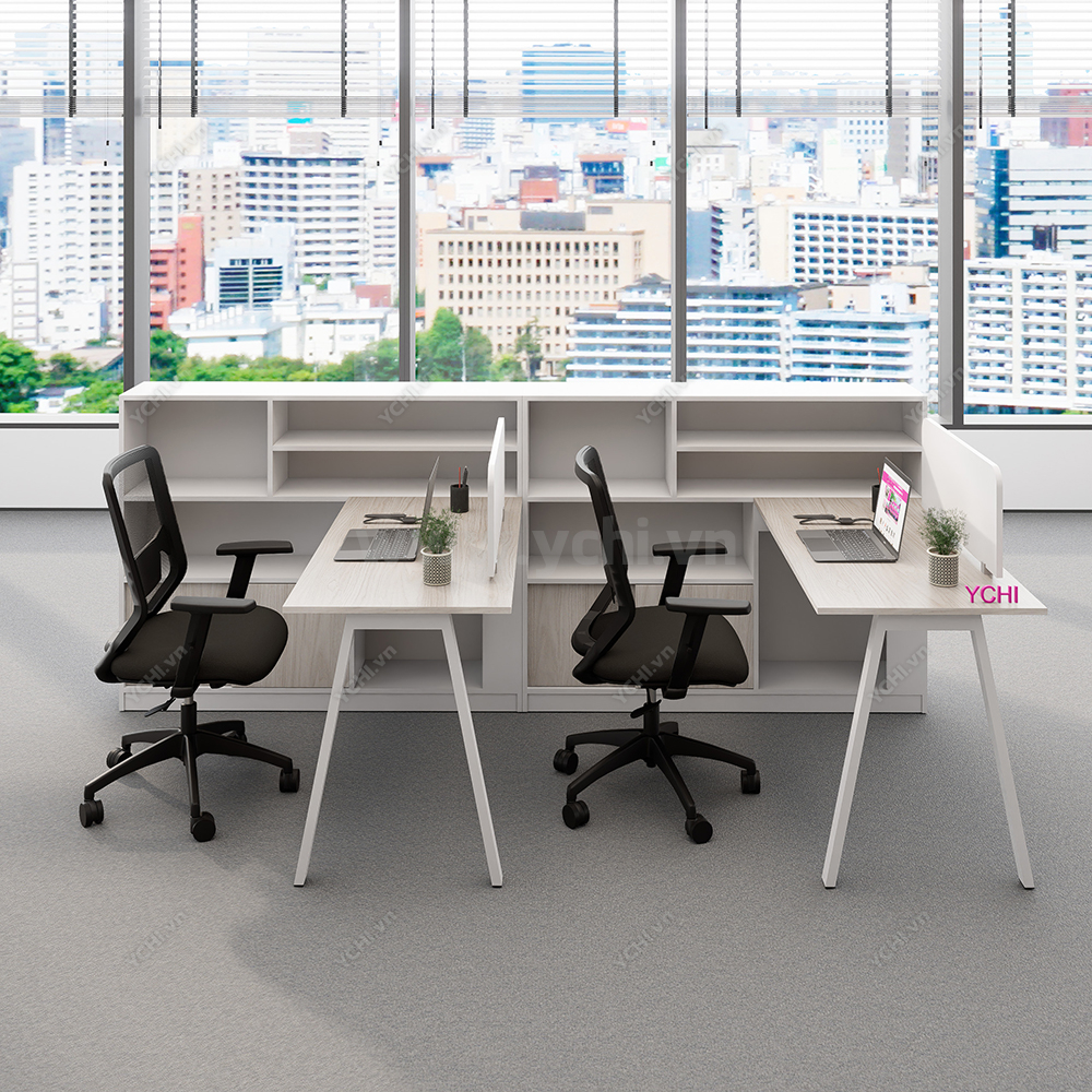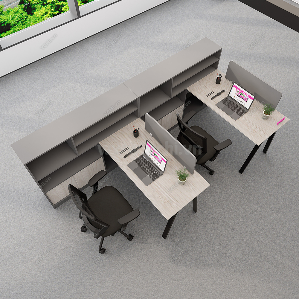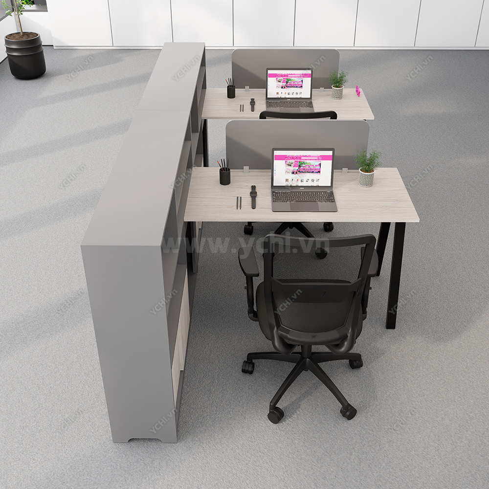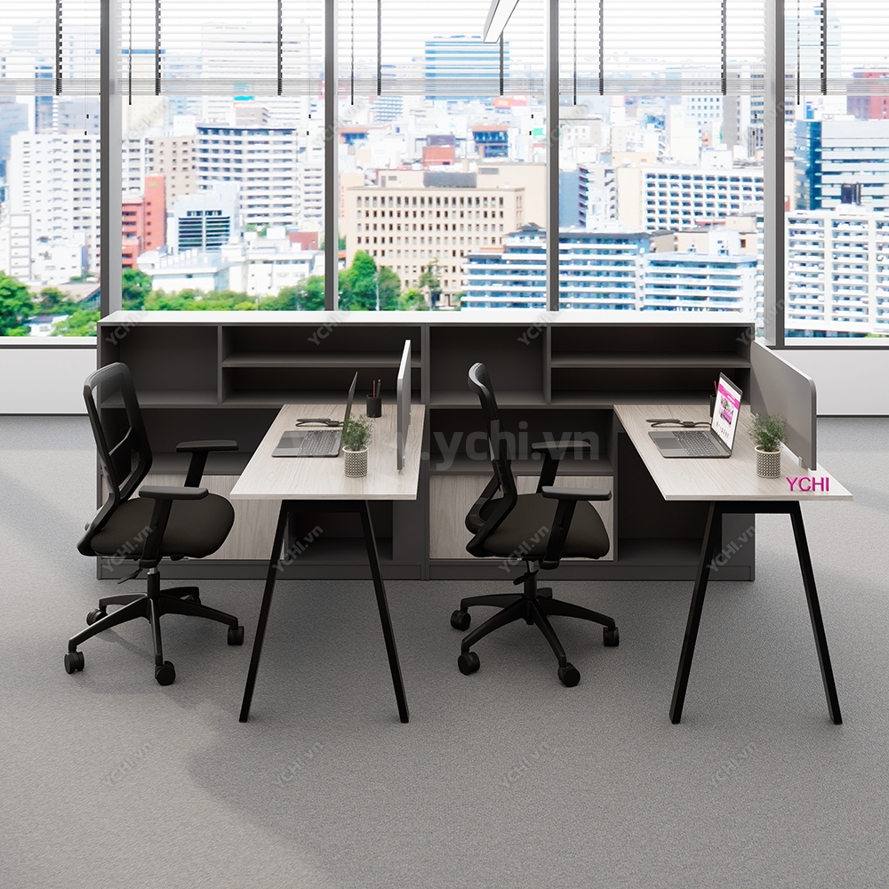 Khác biệt hoàn toàn với các dòng bàn đơn truyền thống, Cụm Bàn Làm Việc 2 Người Không Gian Atom Space YCHIAS025 sở hữu ngôn ngữ thiết kế trải dài liền mạch, sử dụng mặt gỗ công nghiệp cao cấp với gam màu sáng tinh khôi, tạo cảm giác nới rộng diện tích tối đa. Điểm nhấn ấn tượng nằm ở sự đối xứng hoàn hảo, nơi mỗi vị trí ngồi đều được trang bị một hệ tủ hộc kéo 3 ngăn vững chãi đóng vai trò như chân trụ trung tâm, vừa đảm bảo khả năng chịu lực tuyệt vời, vừa mang lại không gian lưu trữ cá nhân cực kỳ tiện lợi. Sự kết hợp giữa khung chân sắt chữ A sơn tĩnh điện màu đen quyền lực và vách ngăn xám tối tối giản không chỉ tạo ra ranh giới riêng tư cần thiết để tăng cường sự tập trung, mà còn kiến tạo nên một tổng thể kiến trúc văn phòng vô cùng đẳng cấp và đồng bộ. Đây chính là sự lựa chọn chiến lược để thúc đẩy tinh thần kết nối đồng nghiệp trong khi vẫn giữ vững hiệu suất làm việc độc lập, phù hợp hoàn hảo cho các startup và doanh nghiệp hướng tới phong cách hiện đại, tinh gọn.