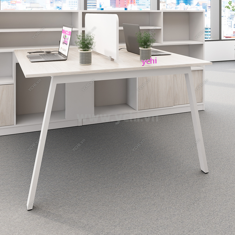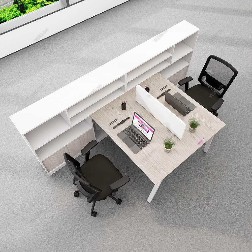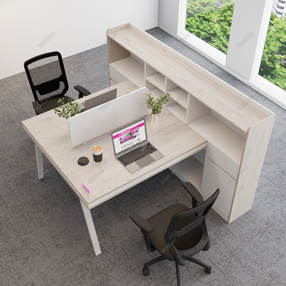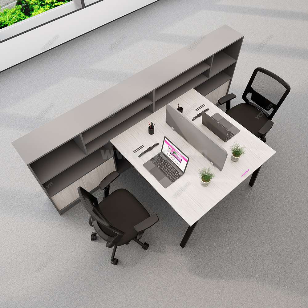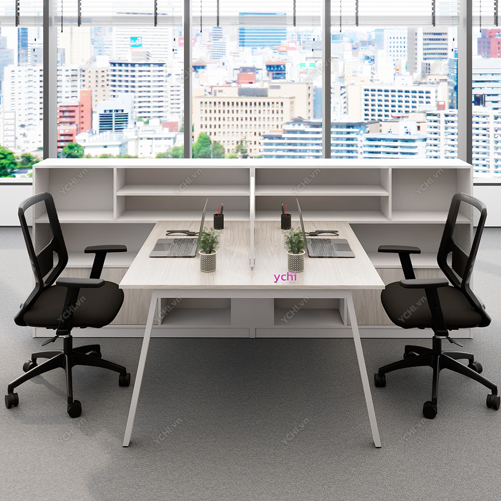 Khác biệt hoàn toàn với các dòng bàn đơn truyền thống, Cụm Bàn Làm Việc 2 Người Không Gian Atom Space YCHIAS026 sở hữu ngôn ngữ thiết kế trải dài liền mạch, sử dụng mặt gỗ công nghiệp cao cấp với gam màu sáng tinh khôi, tạo cảm giác nới rộng diện tích tối đa. Điểm nhấn ấn tượng nằm ở sự đối xứng hoàn hảo, nơi mỗi vị trí ngồi đều được trang bị một hệ tủ hộc kéo 3 ngăn vững chãi đóng vai trò như chân trụ trung tâm, vừa đảm bảo khả năng chịu lực tuyệt vời, vừa mang lại không gian lưu trữ cá nhân cực kỳ tiện lợi. Sự kết hợp giữa khung chân sắt chữ A sơn tĩnh điện màu đen quyền lực và vách ngăn xám tối tối giản không chỉ tạo ra ranh giới riêng tư cần thiết để tăng cường sự tập trung, mà còn kiến tạo nên một tổng thể kiến trúc văn phòng vô cùng đẳng cấp và đồng bộ. Đây chính là sự lựa chọn chiến lược để thúc đẩy tinh thần kết nối đồng nghiệp trong khi vẫn giữ vững hiệu suất làm việc độc lập, phù hợp hoàn hảo cho các startup và doanh nghiệp hướng tới phong cách hiện đại, tinh gọn.