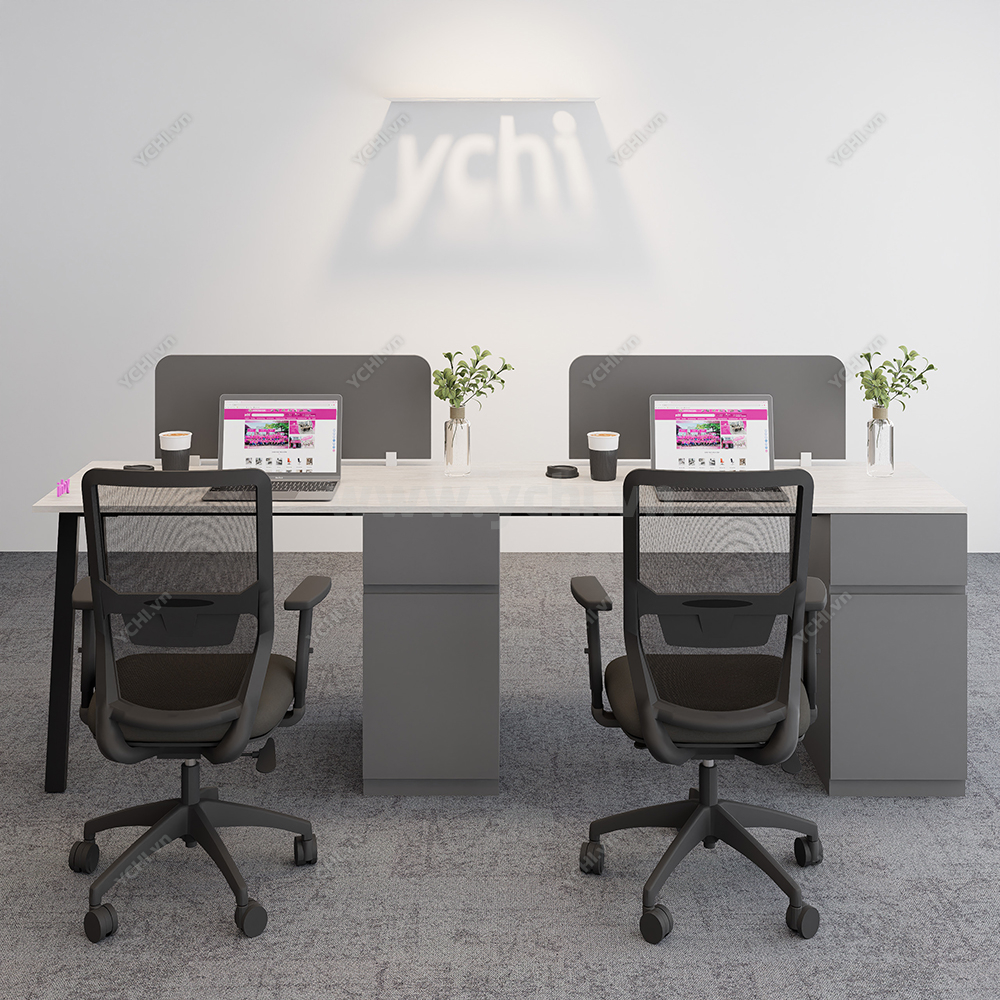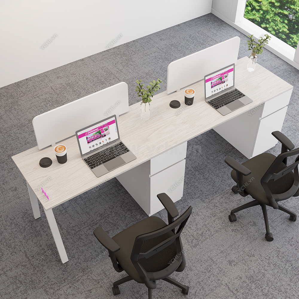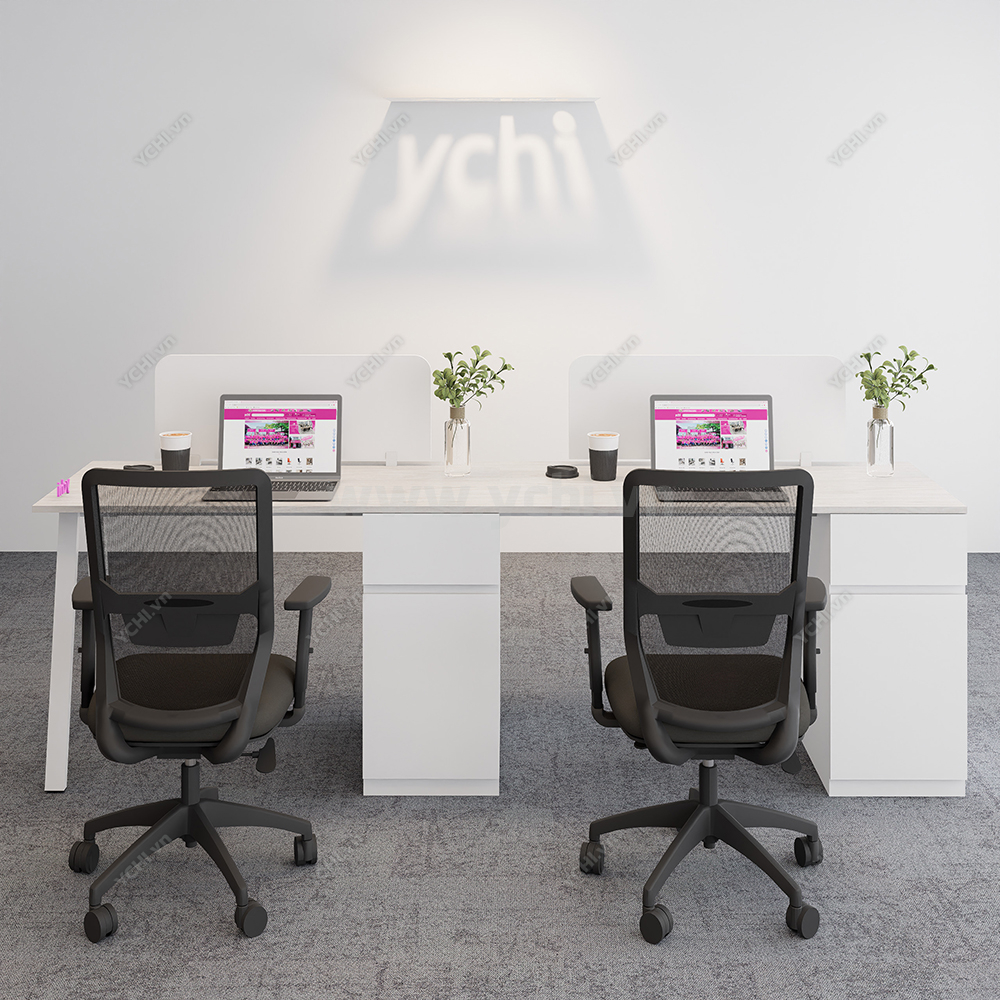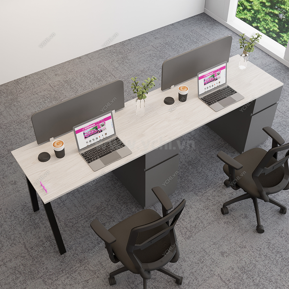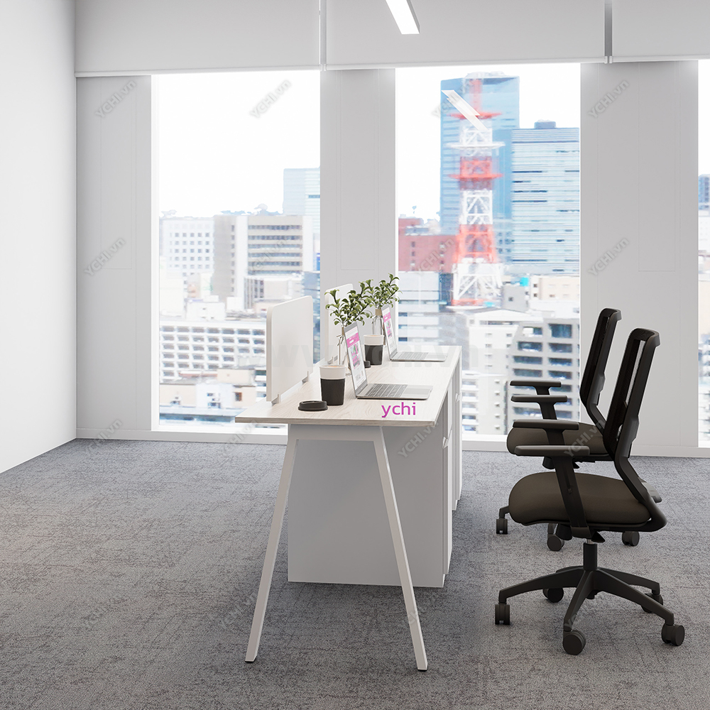 Khác biệt hoàn toàn với các dòng bàn đơn truyền thống, Cụm Bàn Làm Việc 2 Người Không Gian Atom Space YCHIAS027 sở hữu ngôn ngữ thiết kế trải dài liền mạch, sử dụng mặt gỗ công nghiệp cao cấp với gam màu sáng tinh khôi, tạo cảm giác nới rộng diện tích tối đa. Điểm nhấn ấn tượng nằm ở sự đối xứng hoàn hảo, nơi mỗi vị trí ngồi đều được trang bị một hệ tủ hộc kéo 3 ngăn vững chãi đóng vai trò như chân trụ trung tâm, vừa đảm bảo khả năng chịu lực tuyệt vời, vừa mang lại không gian lưu trữ cá nhân cực kỳ tiện lợi. Sự kết hợp giữa khung chân sắt chữ A sơn tĩnh điện màu đen quyền lực và vách ngăn xám tối tối giản không chỉ tạo ra ranh giới riêng tư cần thiết để tăng cường sự tập trung, mà còn kiến tạo nên một tổng thể kiến trúc văn phòng vô cùng đẳng cấp và đồng bộ. Đây chính là sự lựa chọn chiến lược để thúc đẩy tinh thần kết nối đồng nghiệp trong khi vẫn giữ vững hiệu suất làm việc độc lập, phù hợp hoàn hảo cho các startup và doanh nghiệp hướng tới phong cách hiện đại, tinh gọn.