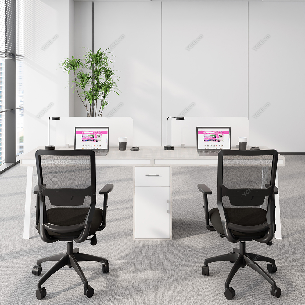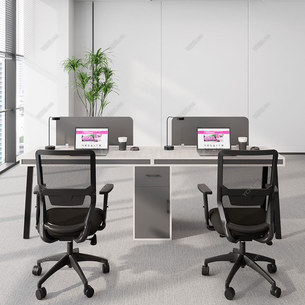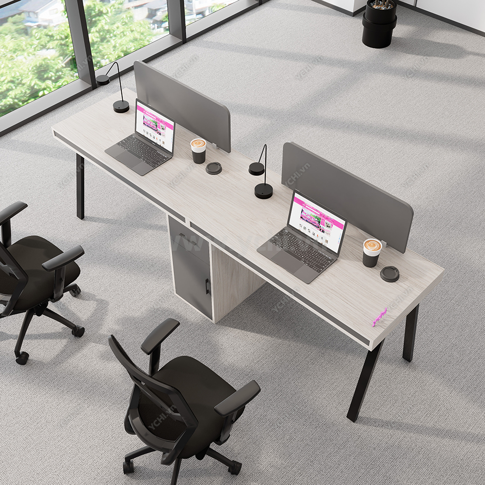Khác biệt hoàn toàn với các dòng bàn đơn truyền thống, Cụm Bàn Làm Việc 2 Người Không Gian Atom Space YCHIAS030 sở hữu ngôn ngữ thiết kế trải dài liền mạch, sử dụng mặt gỗ công nghiệp cao cấp với gam màu sáng tinh khôi, tạo cảm giác nới rộng diện tích tối đa. Điểm nhấn ấn tượng nằm ở sự đối xứng hoàn hảo, nơi mỗi vị trí ngồi đều được trang bị một hệ tủ hộc kéo 3 ngăn vững chãi đóng vai trò như chân trụ trung tâm, vừa đảm bảo khả năng chịu lực tuyệt vời, vừa mang lại không gian lưu trữ cá nhân cực kỳ tiện lợi. Sự kết hợp giữa khung chân sắt chữ A sơn tĩnh điện màu đen quyền lực và vách ngăn xám tối tối giản không chỉ tạo ra ranh giới riêng tư cần thiết để tăng cường sự tập trung, mà còn kiến tạo nên một tổng thể kiến trúc văn phòng vô cùng đẳng cấp và đồng bộ. Đây chính là sự lựa chọn chiến lược để thúc đẩy tinh thần kết nối đồng nghiệp trong khi vẫn giữ vững hiệu suất làm việc độc lập, phù hợp hoàn hảo cho các startup và doanh nghiệp hướng tới phong cách hiện đại, tinh gọn.