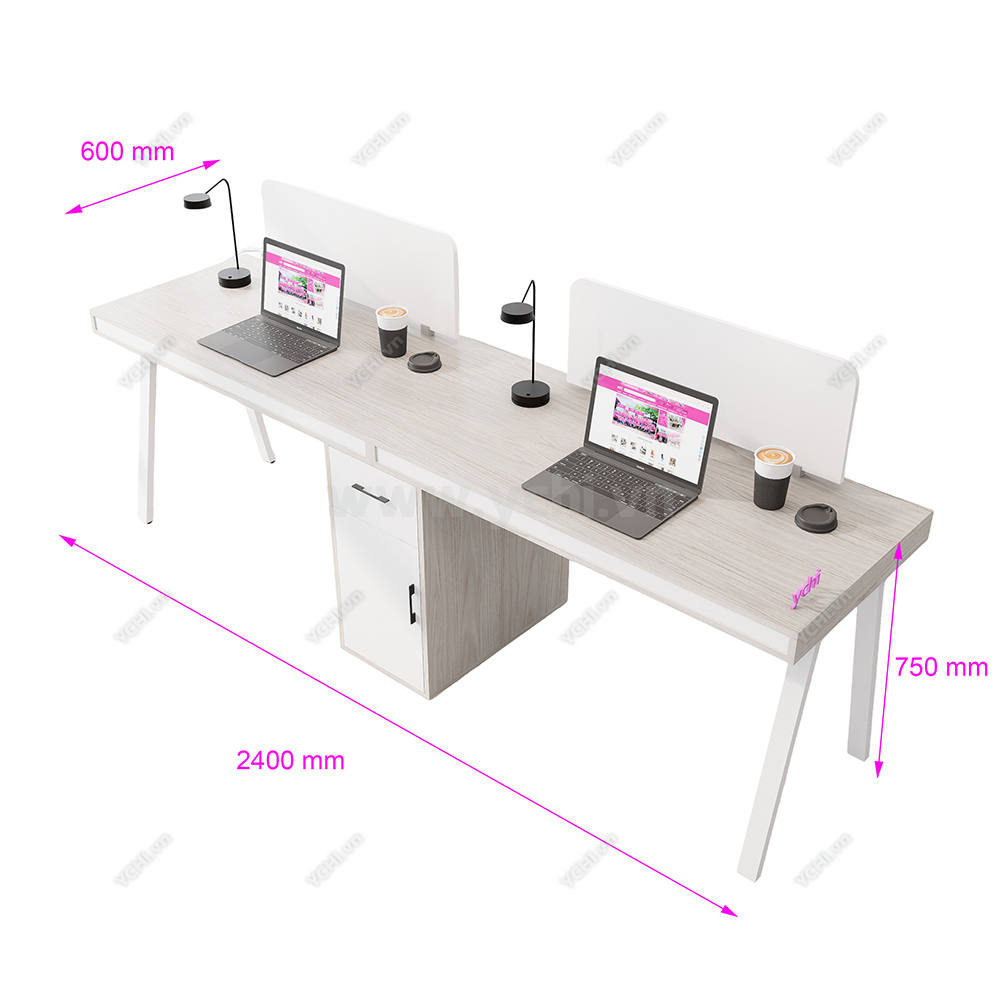 Cụm Bàn Làm Việc 2 Người Không Gian Atom Space YCHIAS030 mang phong cách hiện đại, thiết kế cổ điển, vuông vức, làm cho không gian văn phòng trở nên sang trọng, lịch lãm, đẳng cấp. Đặc biệt, thiết kế mang đến sự hoàn hảo trong không gian sử dụng, có thể kết hợp với tủ di động để tối ưu không gian lưu trữ.